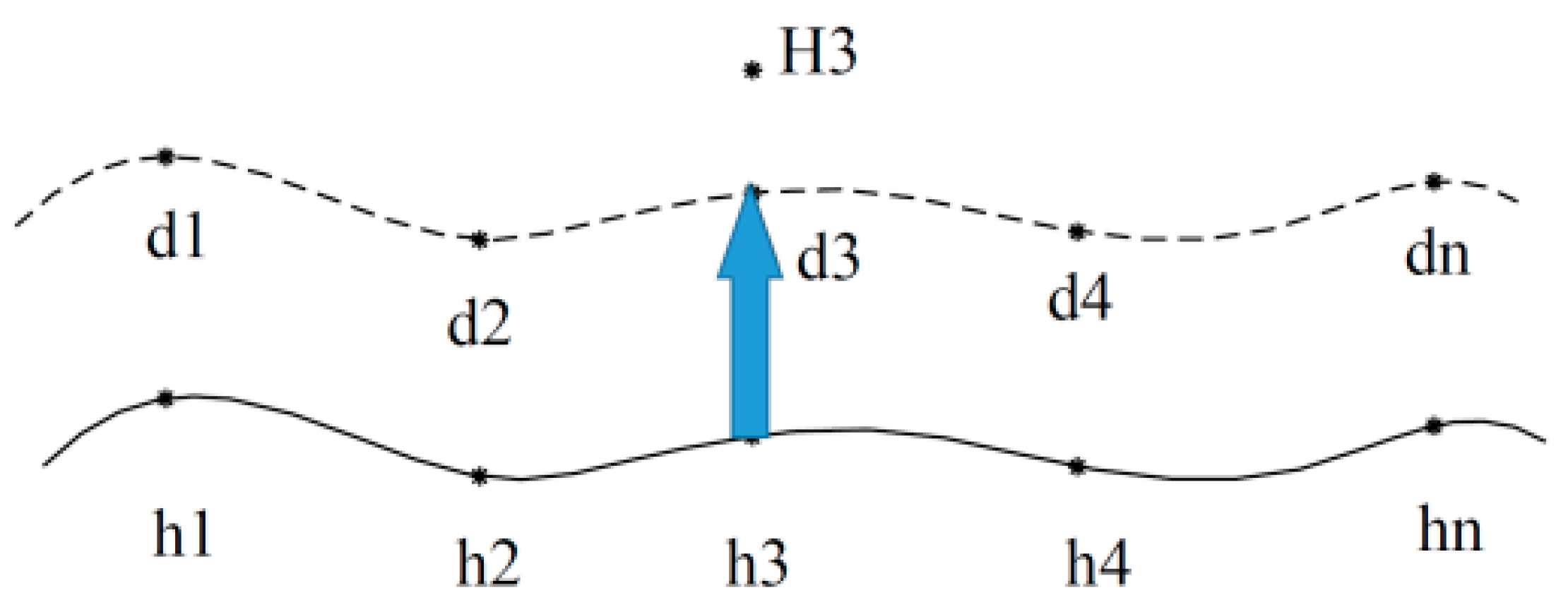 is obtained, from which the final pipe thickness matrix D is obtained. Through the data of this matrix, a three-dimensional graph of the remaining pipe wall thickness can be drawn.