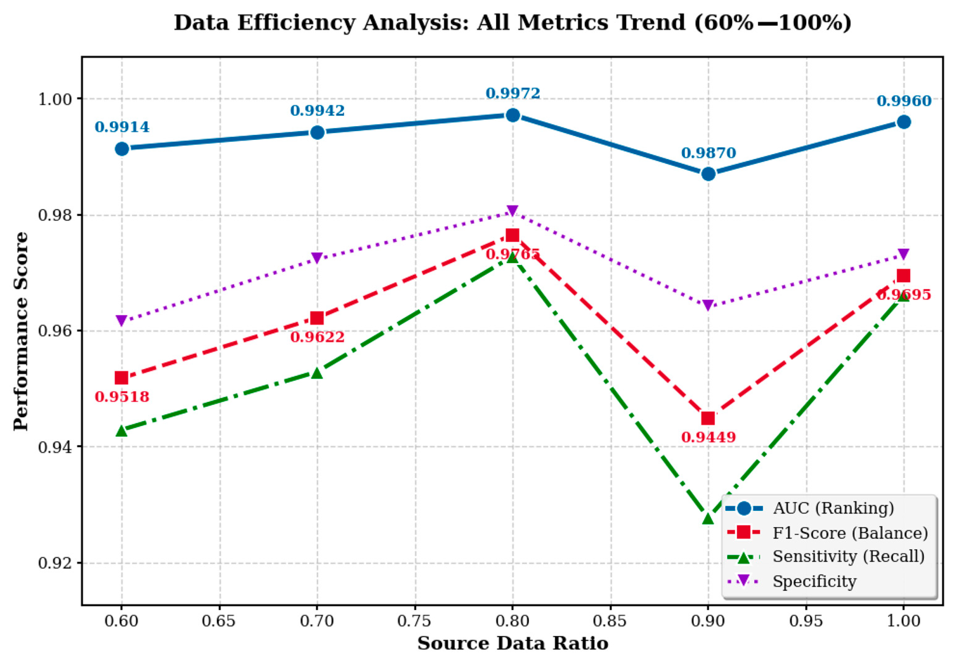 ), our design ensures efficient scalability. Crucially, although folding increases the effective batch size by a factor of 18, the removal of the computationally intensive Layer 4 and fully connected layers effectively offsets this load, ensuring that the model’s resource consumption remains within a lightweight range suitable for clinical deployment.