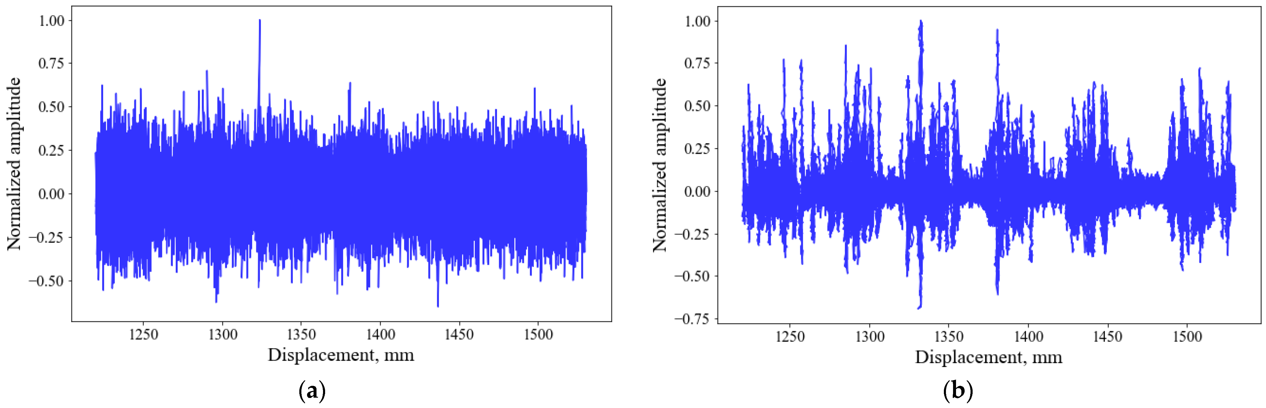 Figure 5 shows the signals obtained from geophones and accelerometers at mortar filled (weak layers to represent fractured strata) and void sides of the sample during drilling. In the Y-axis, the normalized amplitude noted from geophones and accelerometers are plotted against the drilling time. The drill time is proportional to the drilling depth.