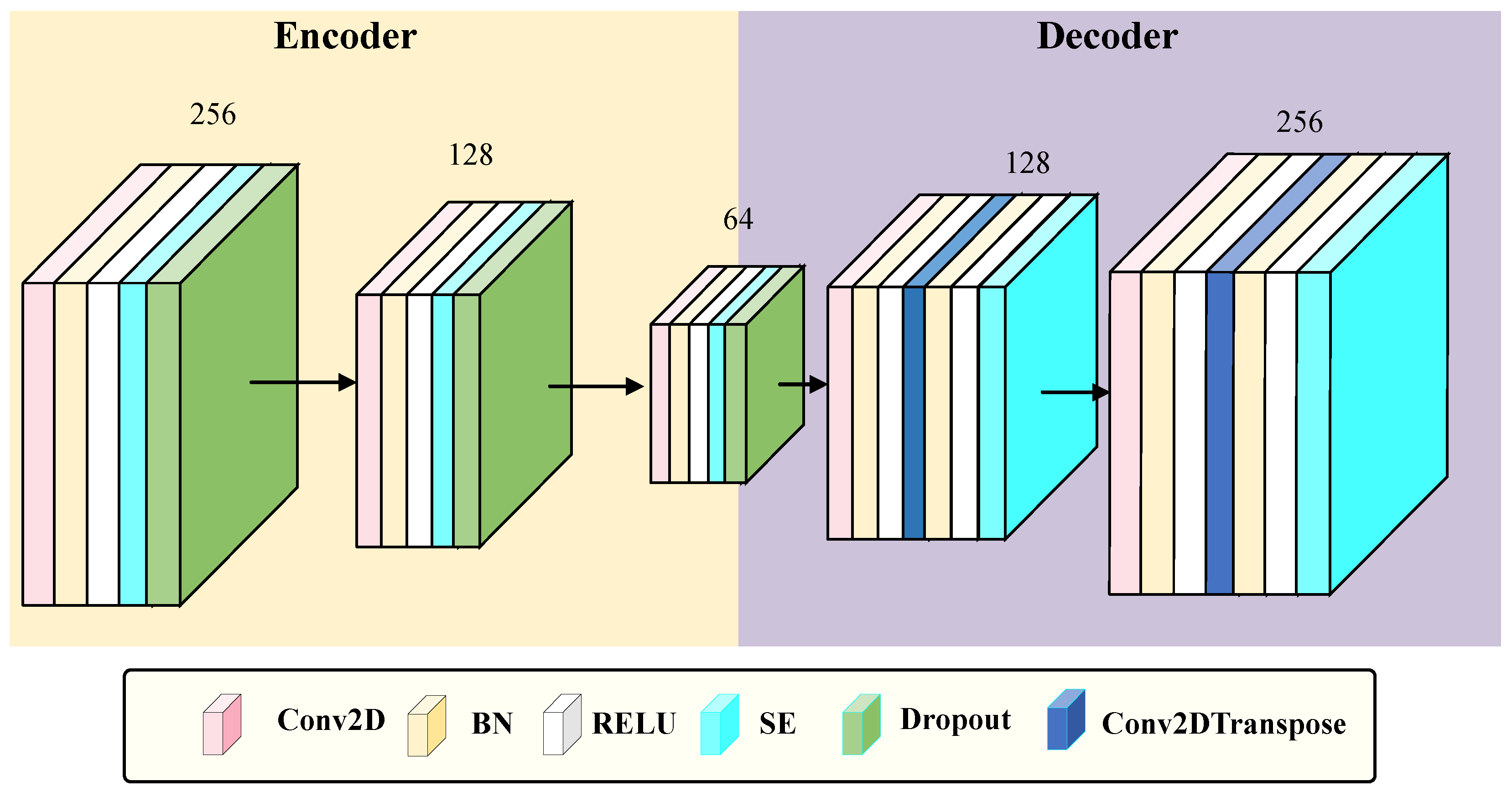 22] CDAE-CNN architecture can alleviate noise. Nevertheless, the utilization of 2 × 1 convolution kernels restricts the capture of spatial features and disregards the differences in channel importance. CAE+CNN [