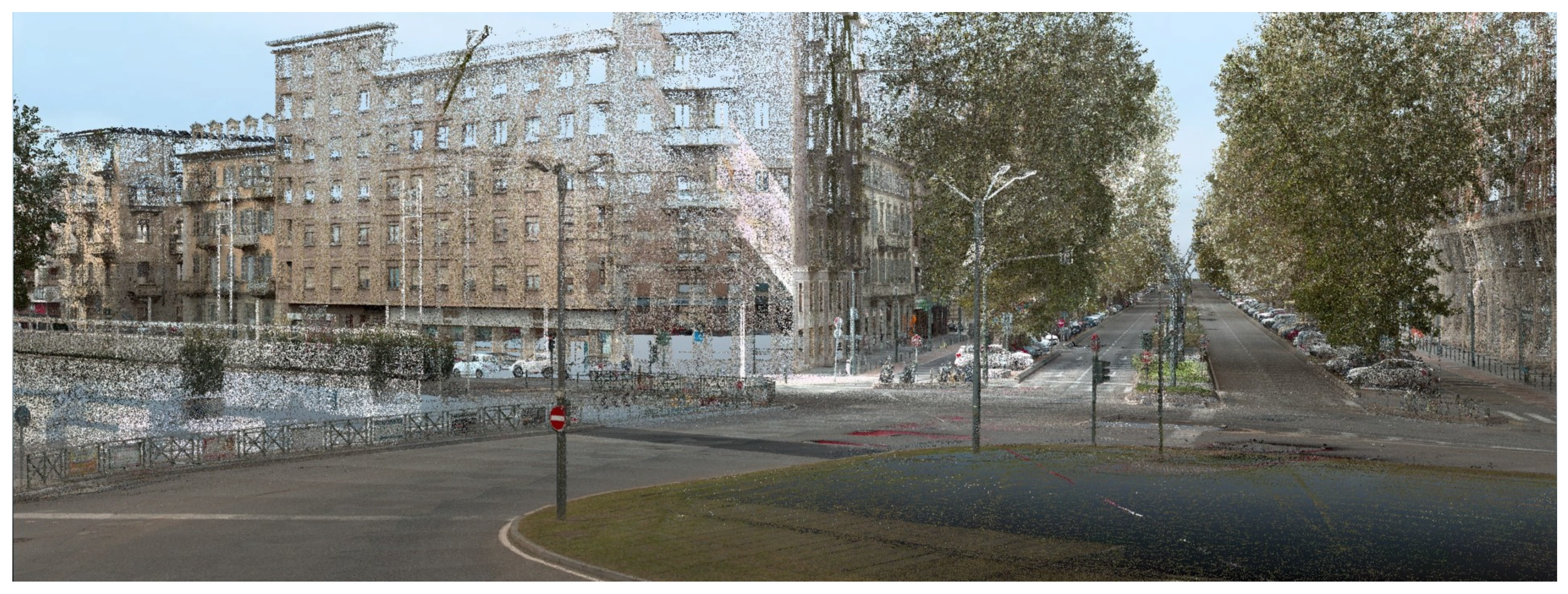 38]. The Turin case (~45 km) occupies an intermediate position, representing an urban-scale MMS acquisition that balances area coverage with detail.
