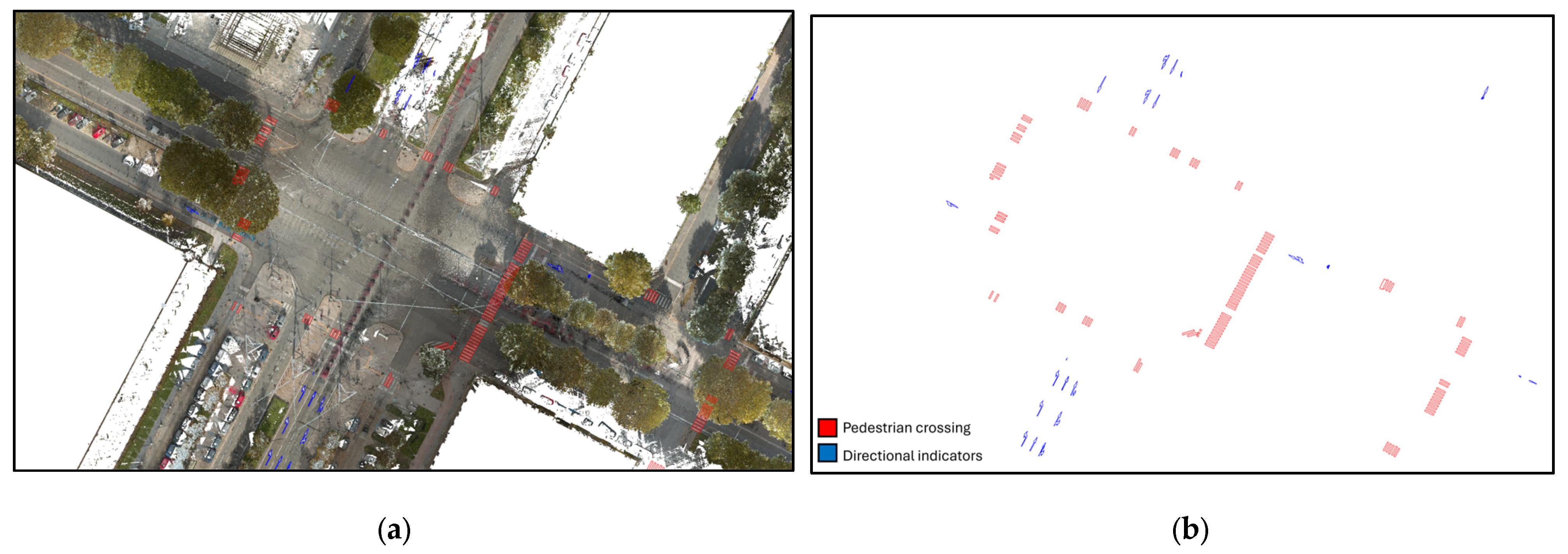 Beyond these aspects, an additional set of challenges emerges when considering the scalability of the framework to an entire urban network. Automating segmentation, classification, and asset recognition is essential for managing the sheer volume and heterogeneity of city-wide datasets. In this regard, the labeled outputs produced by the current workflow provide a robust foundation for training AI models capable of addressing such complexity. Deep learning techniques, in particular, offer promising avenues for automating vertical asset detection, road marking extraction, and pavement distress identification. Their integration would significantly increase processing efficiency and reduce manual intervention, making city-scale implementations more feasible from both a time and cost perspective. AI-driven methods could also enhance the consistency of semantic labeling, support predictive maintenance strategies, and improve the identification of anomalies or missing assets across urban datasets.