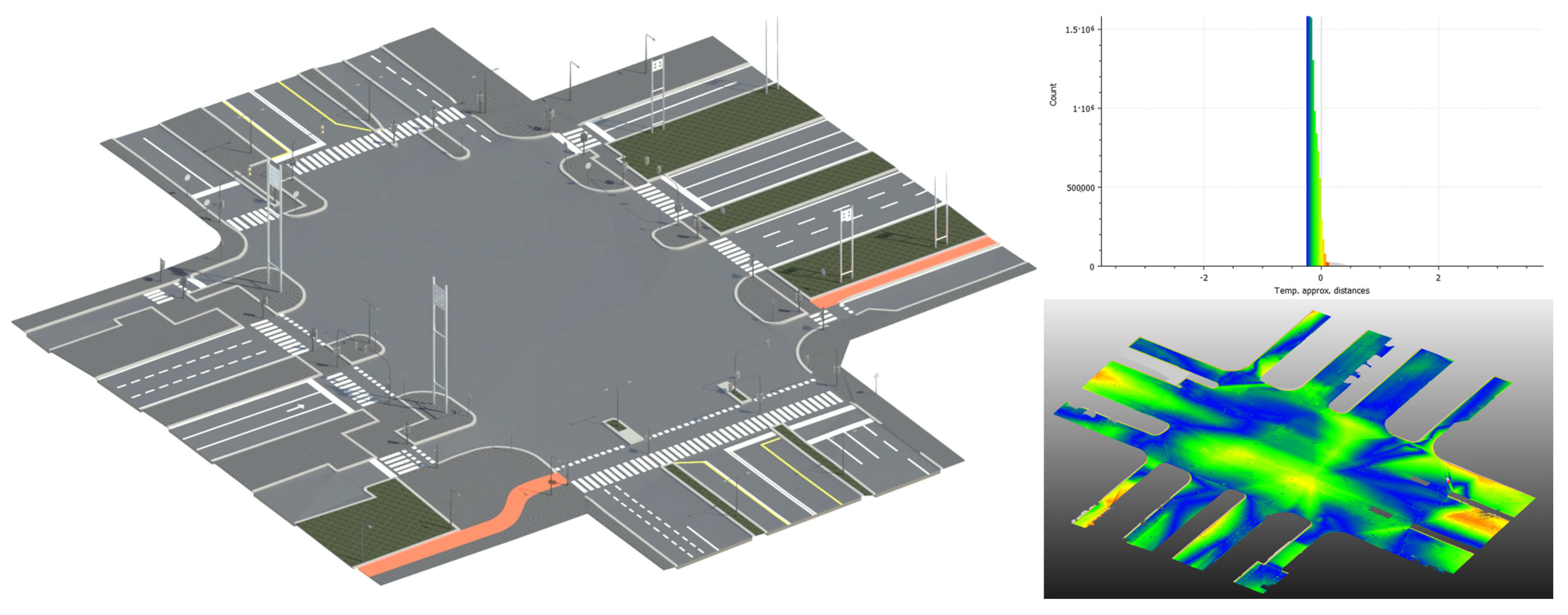 Condition assessment and monitoring: high-fidelity geometry and semantic attributes enable the accurate evaluation of road assets, including streetlights, traffic signs, and pavement markings, allowing timely identification of maintenance needs.