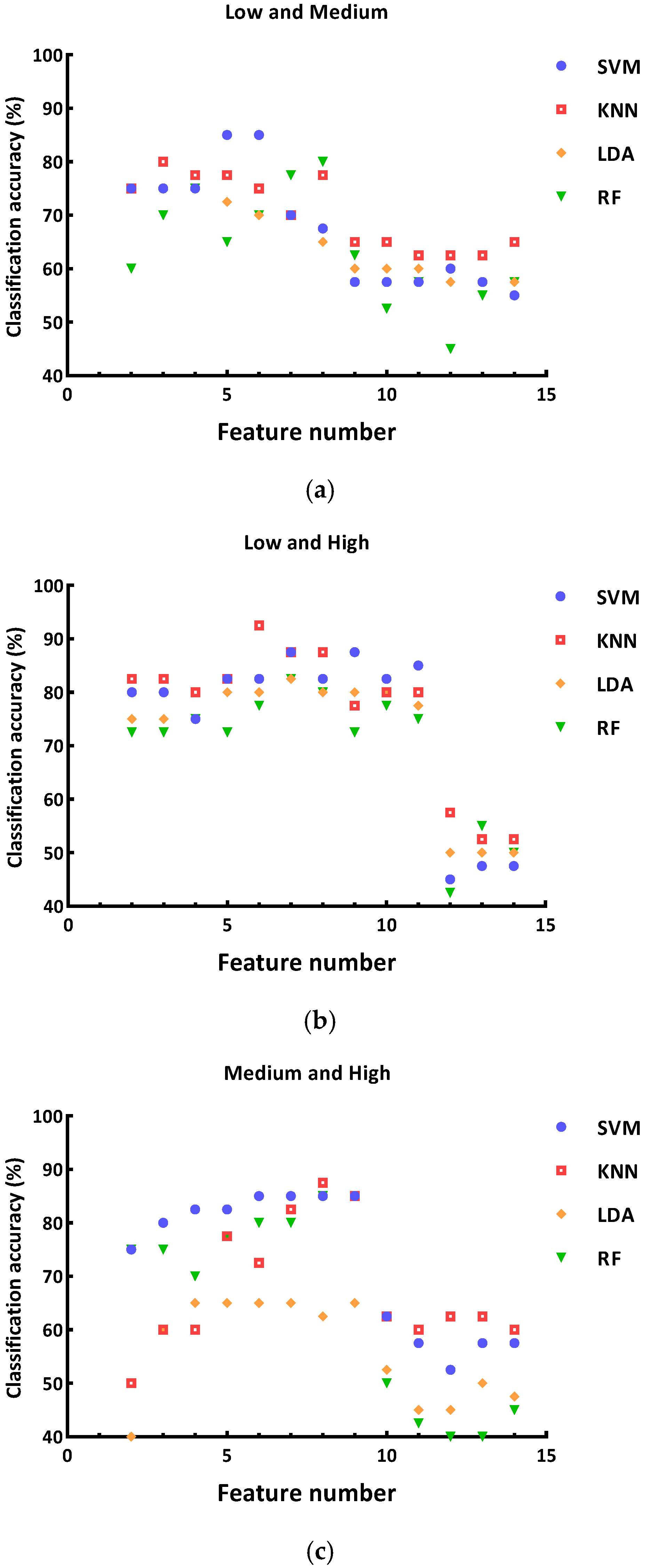 | Applied HRV Features | Classification Accuracy | Model Evaluations | |