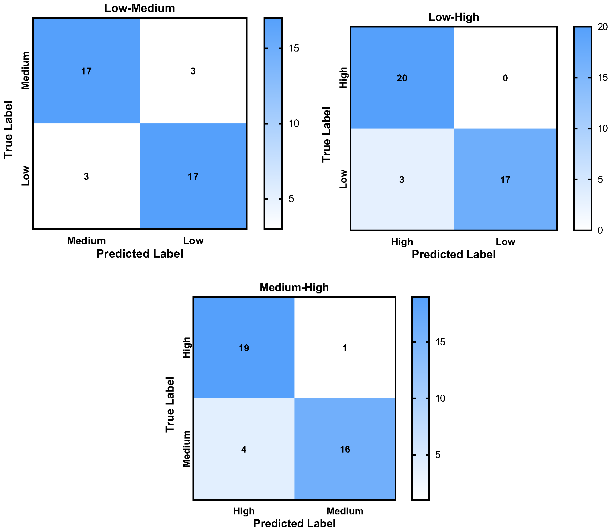 | HRV Features | Low (Mean ± SD) | Medium | High | Low–Medium | Low–High | Medium–High | |||