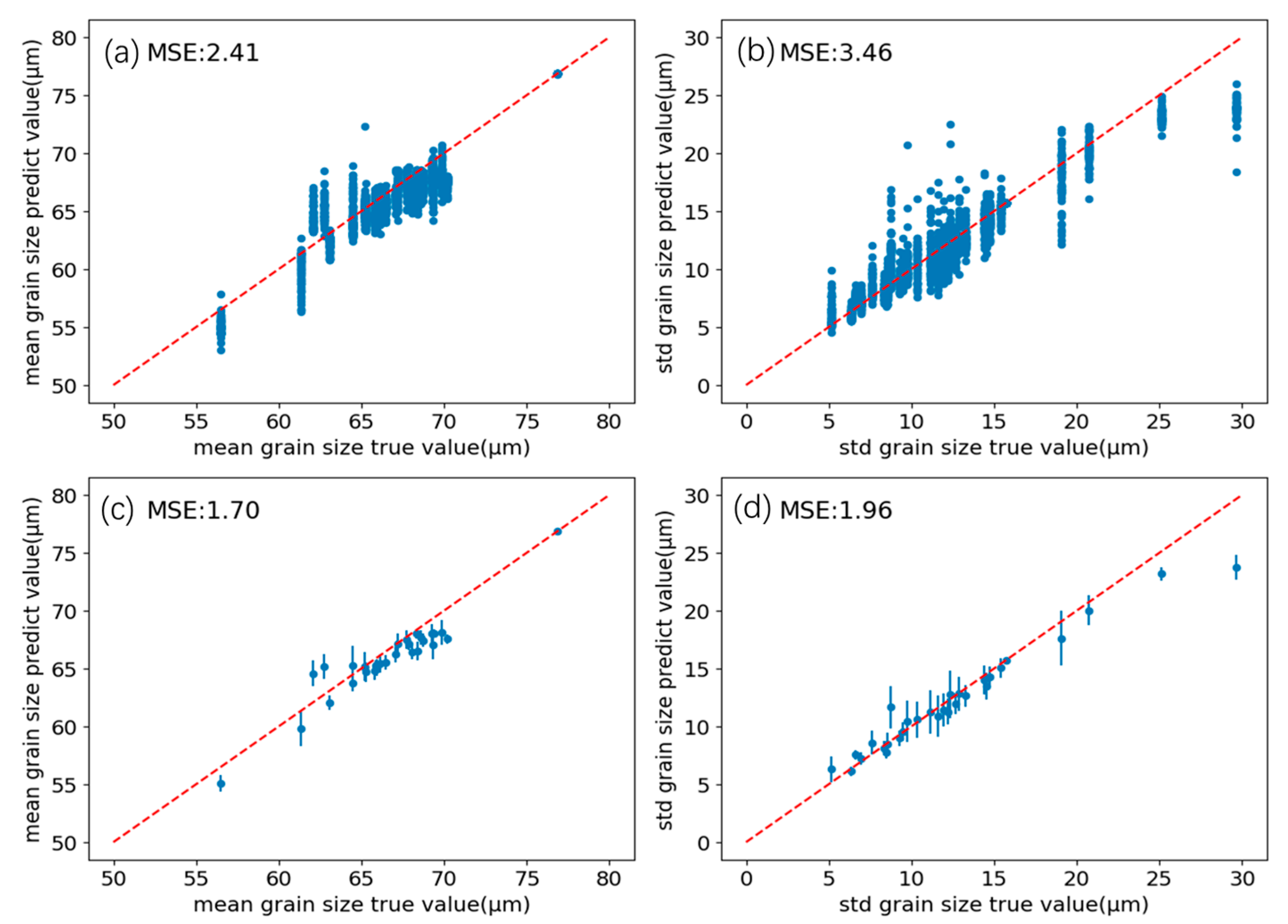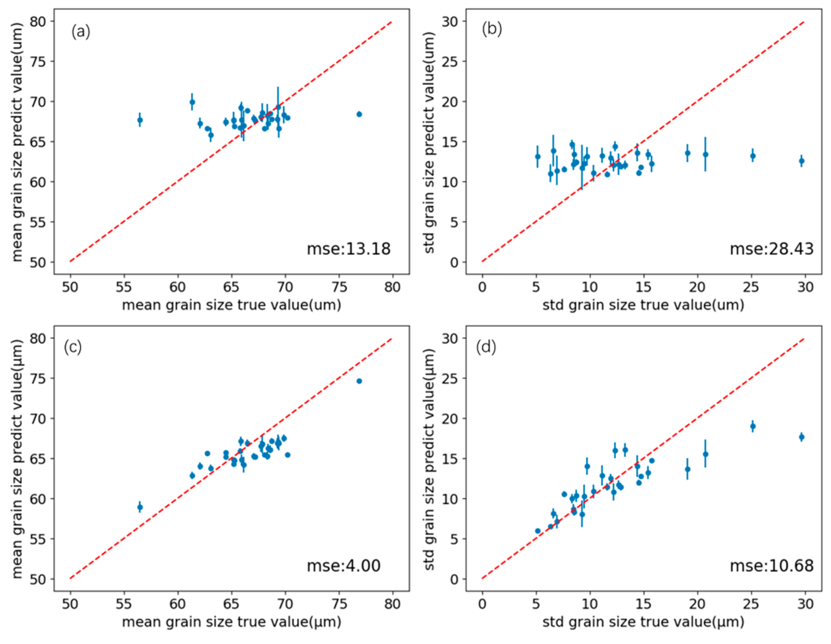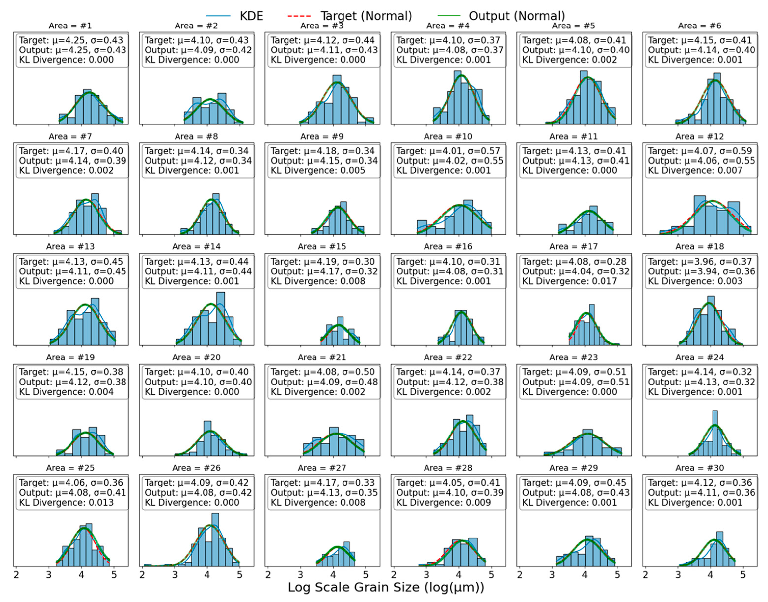 - Transfer Learning-Based Model Generalization Analysis: Probe-variation experiments show that, without transfer learning, the original model cannot reliably distinguish grain size distributions for different inputs. With brief transfer training, the model rapidly converges and achieves improved prediction, demonstrating practical applicability through transfer learning calibration and adaptability to scenario-specific conditions.