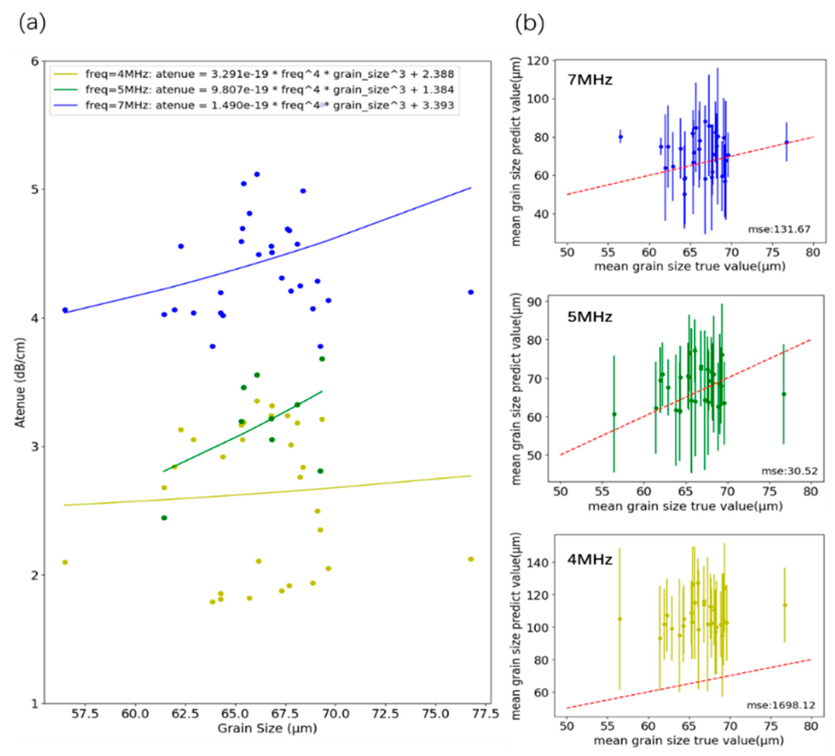 - Li, X.; Song, Y.; Liu, F.; Hu, H.; Ni, P. Evaluation of mean grain size using the multi-scale ultrasonic attenuation coefficient. NDT E Int. 2015, 72, 25–32. [Google Scholar] [CrossRef]