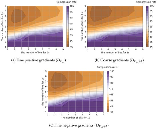 Table 5 shows the compression rates for bit allocation applying the proposed tailored RLE method to the six-channel binary feature data. The table presents the best compression rate among all possible bit allocation patterns, evaluated using 25,000 samples of the six-channel binary feature data. Detailed compression rates for each channel with respect to bit allocation are shown in Figure 11, Figure 12 and Figure 13.