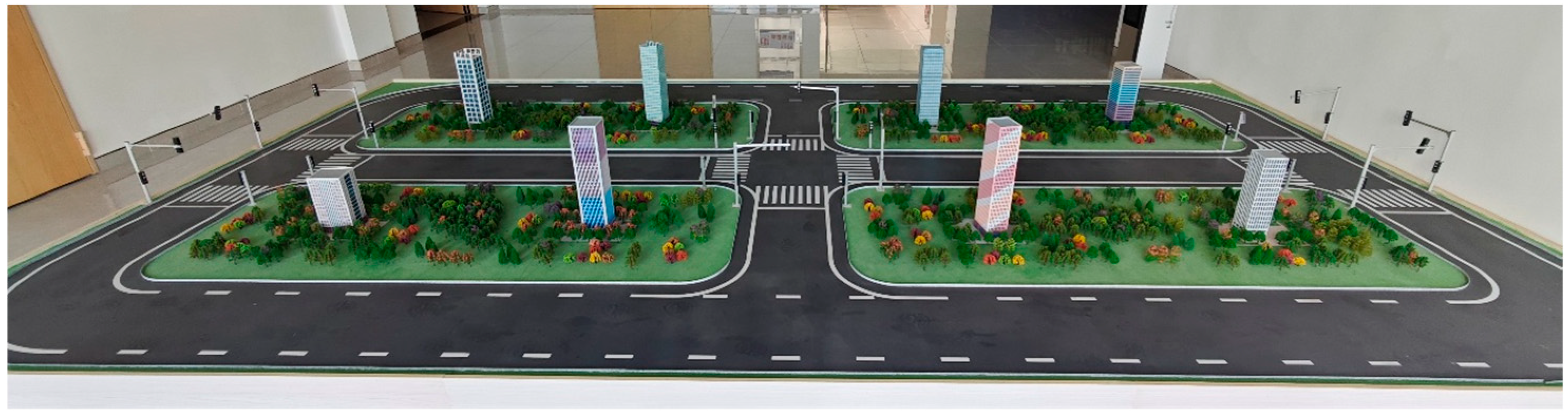 The semi-physical simulation platform developed in this study employs an overhead vision system to detect and identify the identity, position, velocity, and heading angle of model vehicles within a simulated road network. The model vehicles execute control commands solely based on wireless instructions for speed and steering, while the perception and decision-making functions required for simulating intelligent vehicles are implemented through the backend server software. This architecture not only adapts flexibly to various multi-vehicle cooperation scenarios but also eliminates the complexity of model vehicle integration and debugging, providing a safe and efficient environment for cooperative algorithm testing.