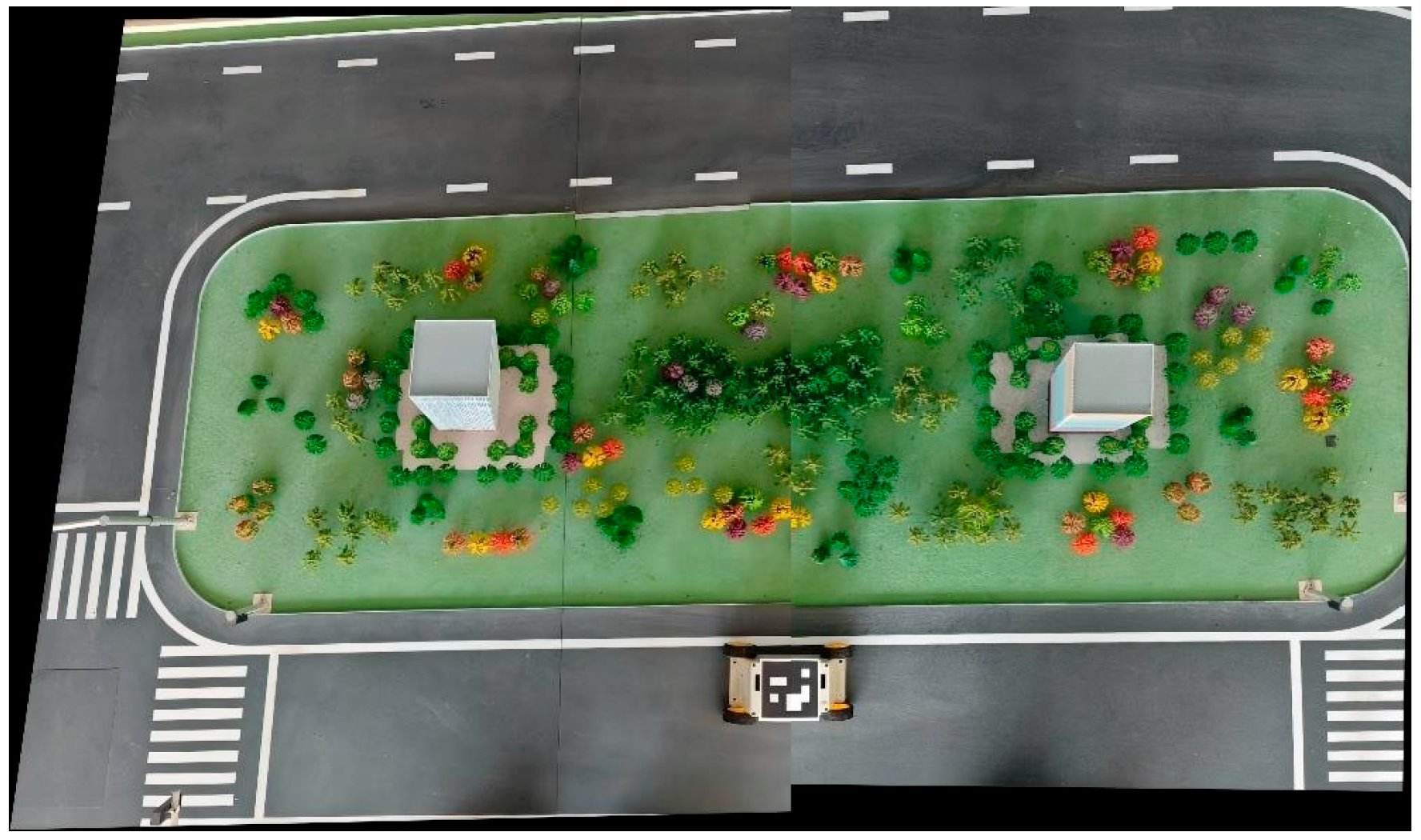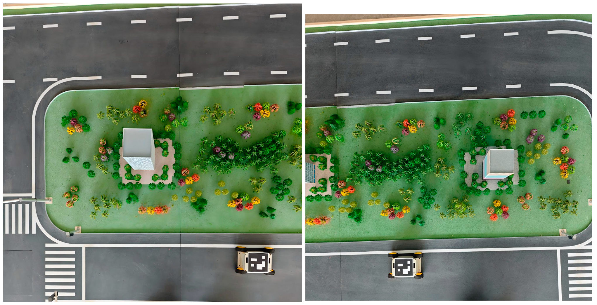 In this experiment, the model vehicle maintained a constant speed of 15 cm/s while entering the stitching region at different predefined approach angles of 0°, 15°, 30°, and 45°, corresponding to the angle between the vehicle’s trajectory and the principal viewing direction of the camera. All other experimental parameters were held constant to ensure controlled variable conditions. The results are shown in