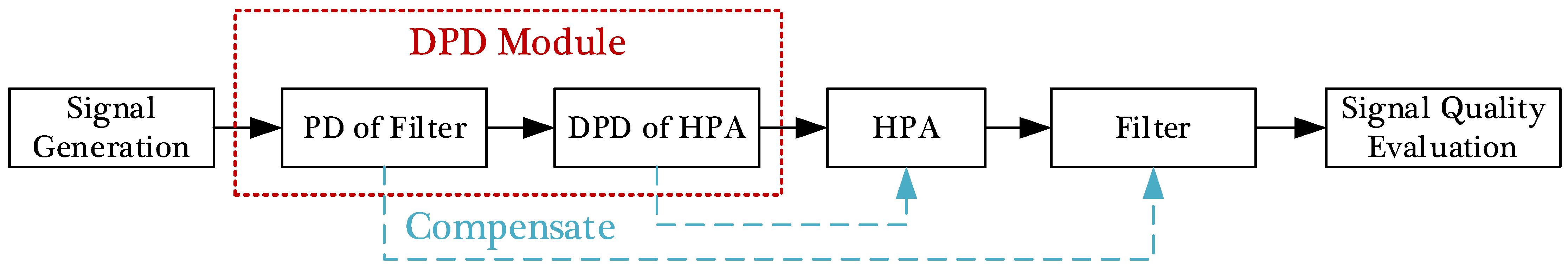 - The predistortion filter breaks the constant envelope characteristics of the signal, causing nonlinear distortion after the signal passing through the HPA, reducing the compensation performance of the predistortion filter.
