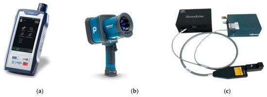 Raman Instrumentation: (a) Handheld Raman spectrometer Bravo (Bruker); (b) Handheld Raman spectrometer Pendar X10 (Pendar Technologies); (c) Raman modular system (CNI).