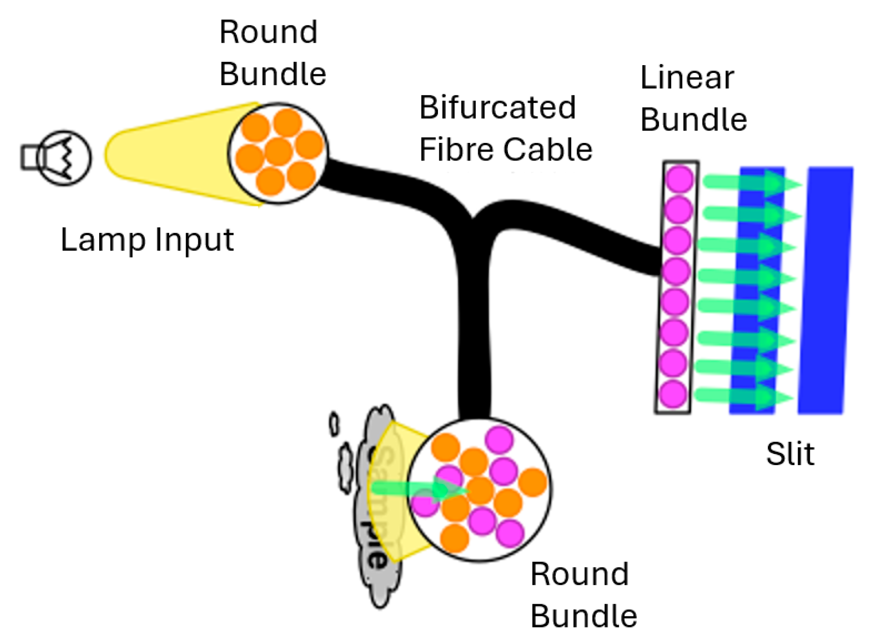 The most basic type of fibre-optic probe is a reflectance probe. The fibre bundle is usually divided into two parts (see