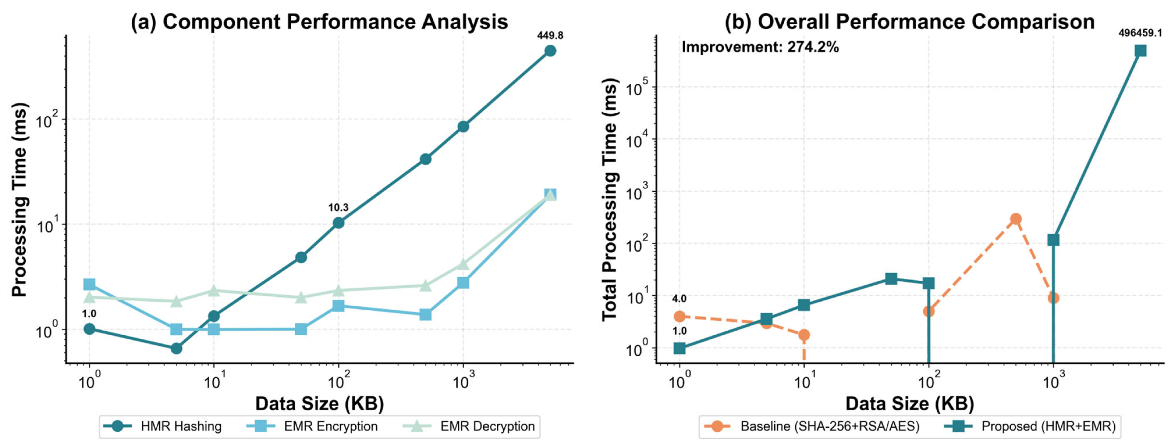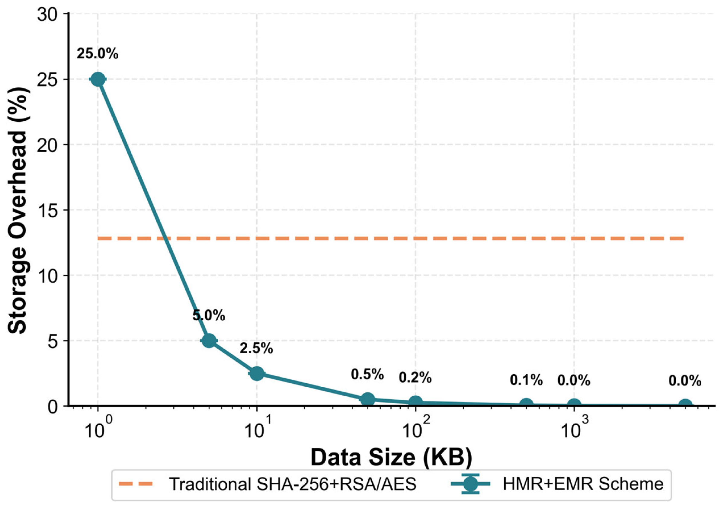 | Scheme | Hash Time (ms) | Encryption Time (ms) | Decryption Time (ms) | Storage Overhead (%) | Security Level |