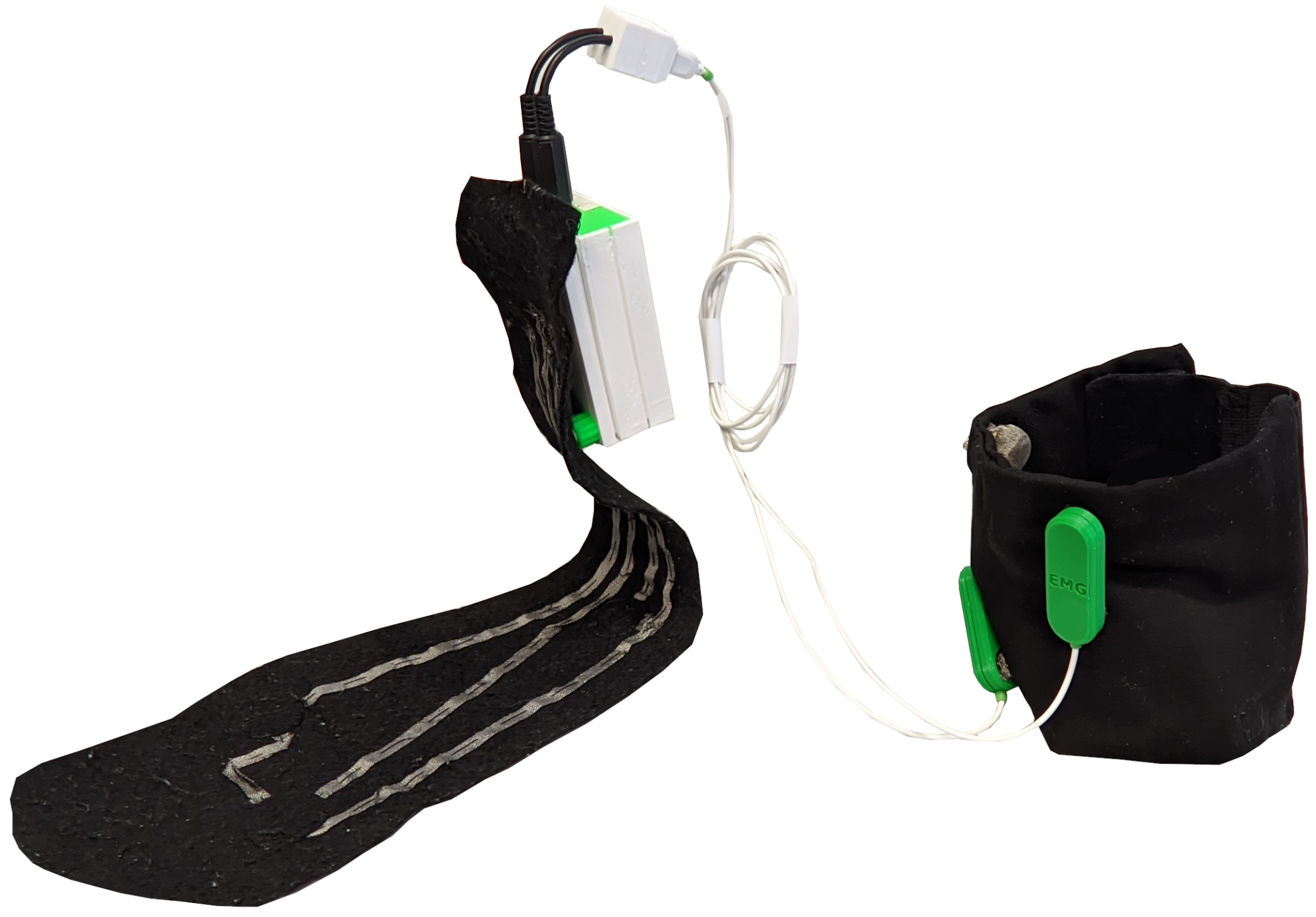 As part of the same wearable system for gait assessment, a textile insole integrating three pressure sensors was employed. This integration is crucial to correlate the muscle activation with the steps during gait as reported in previous works [
