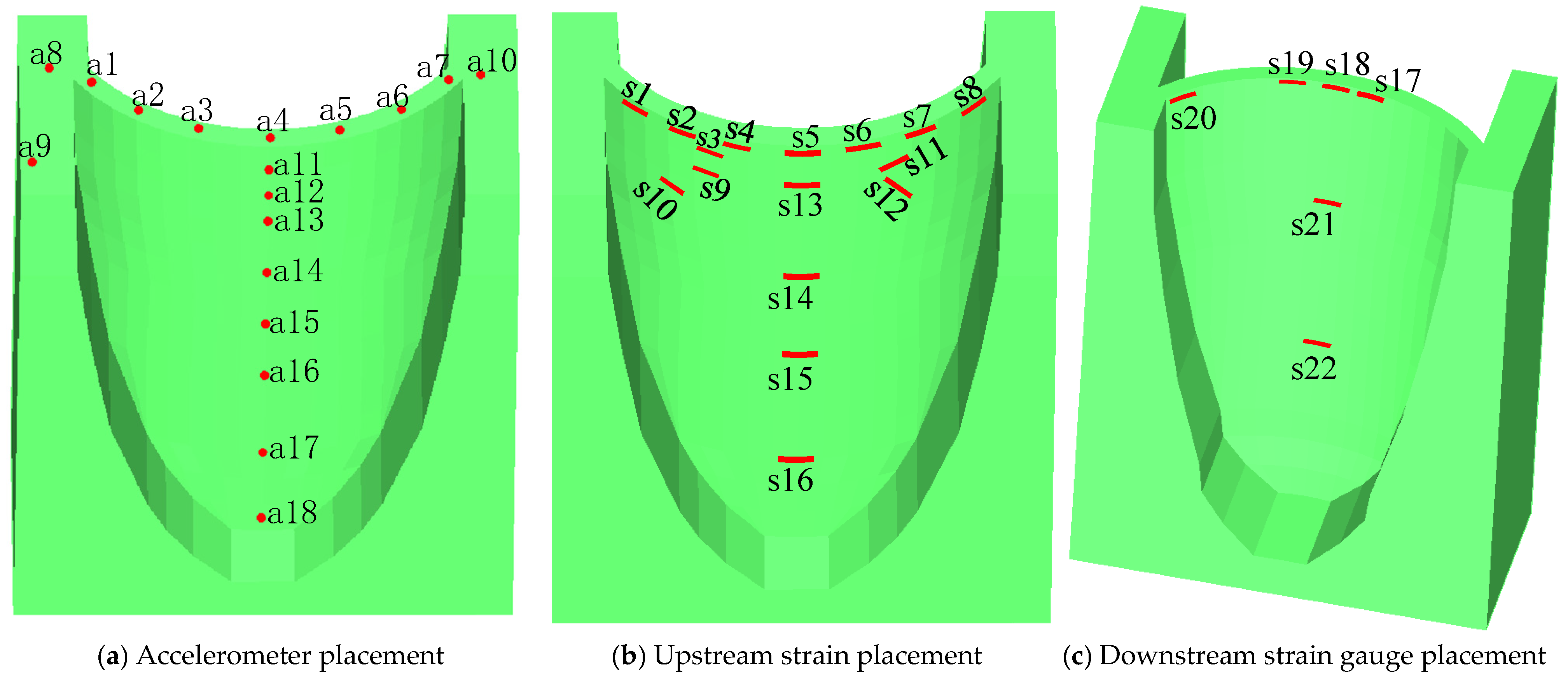 3.2.1. Arch Dam Model and Arranged Sensors