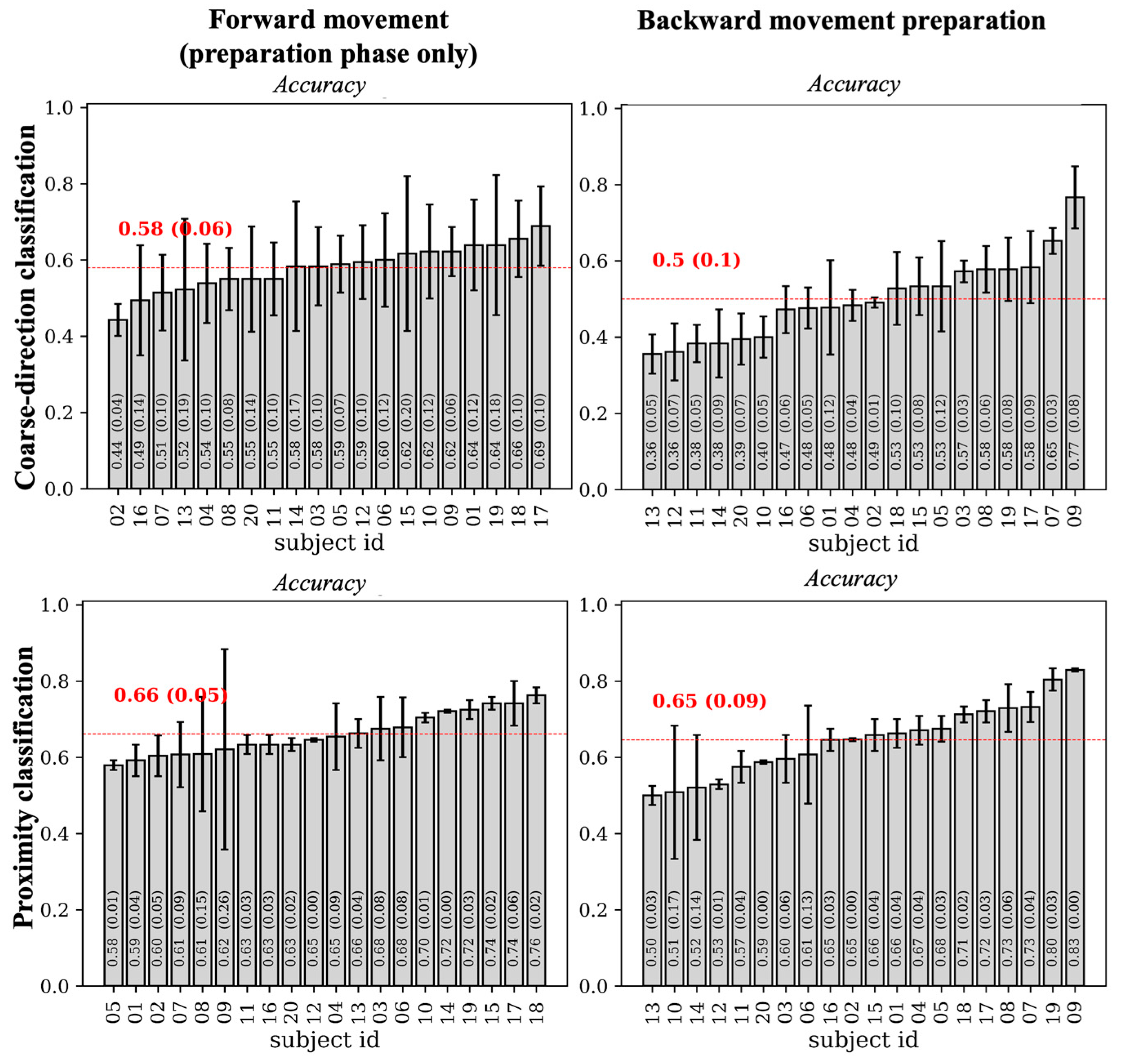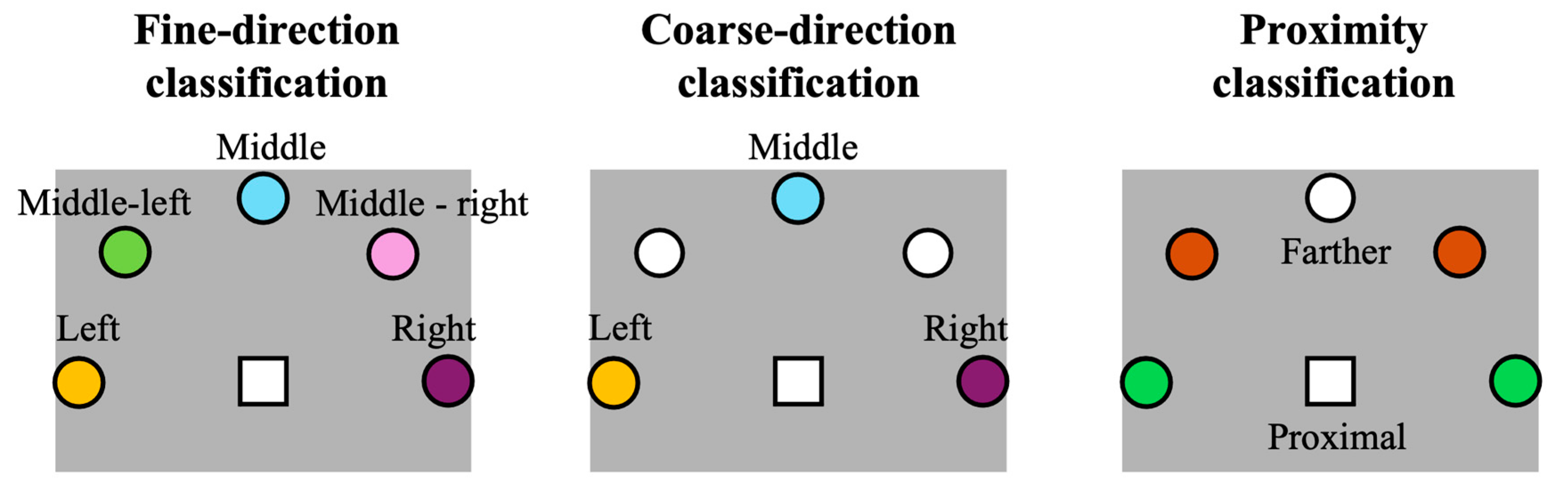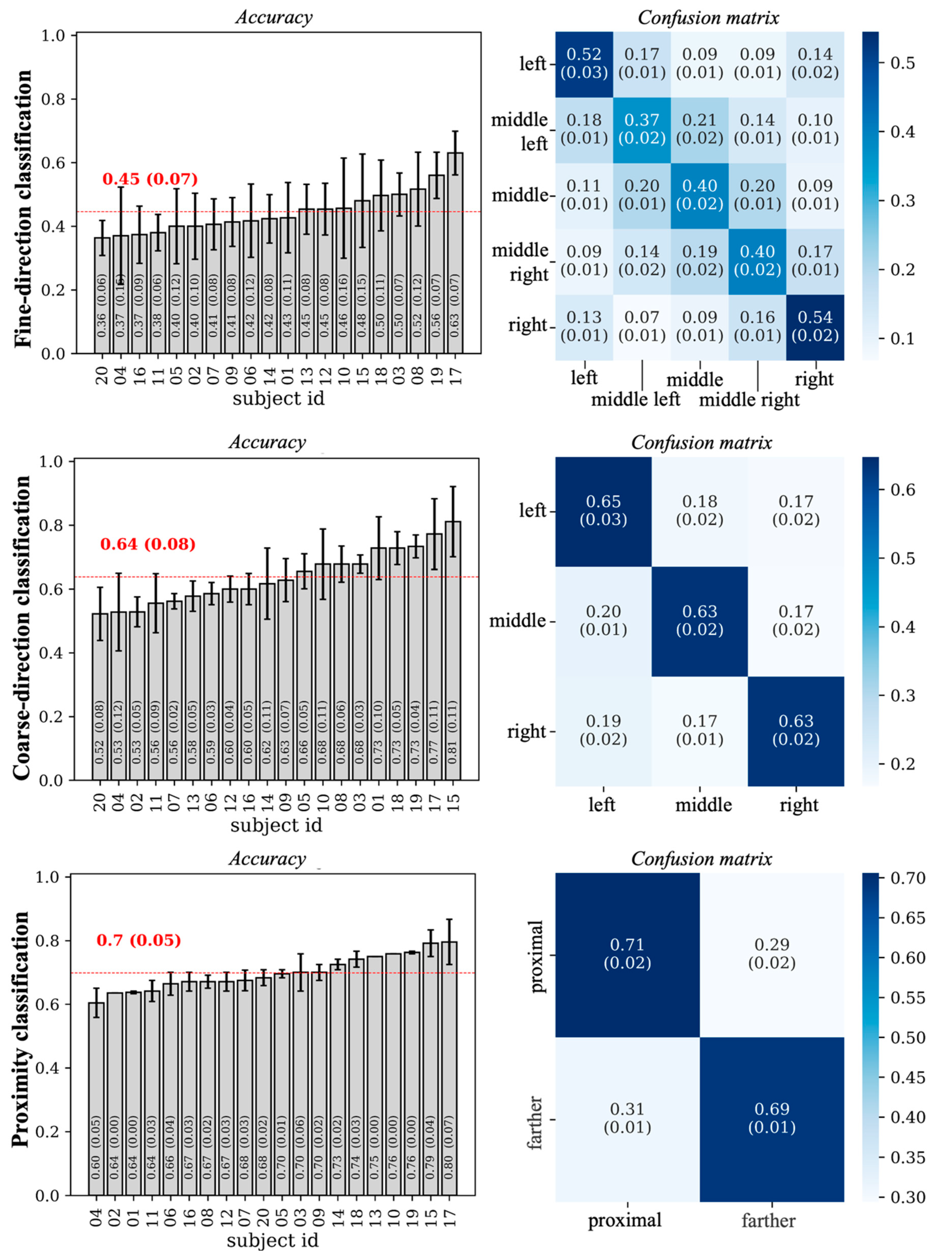 | Subject ID | Fine Direction Classification | Coarse Direction Classification | Proximity Classification | ||||||