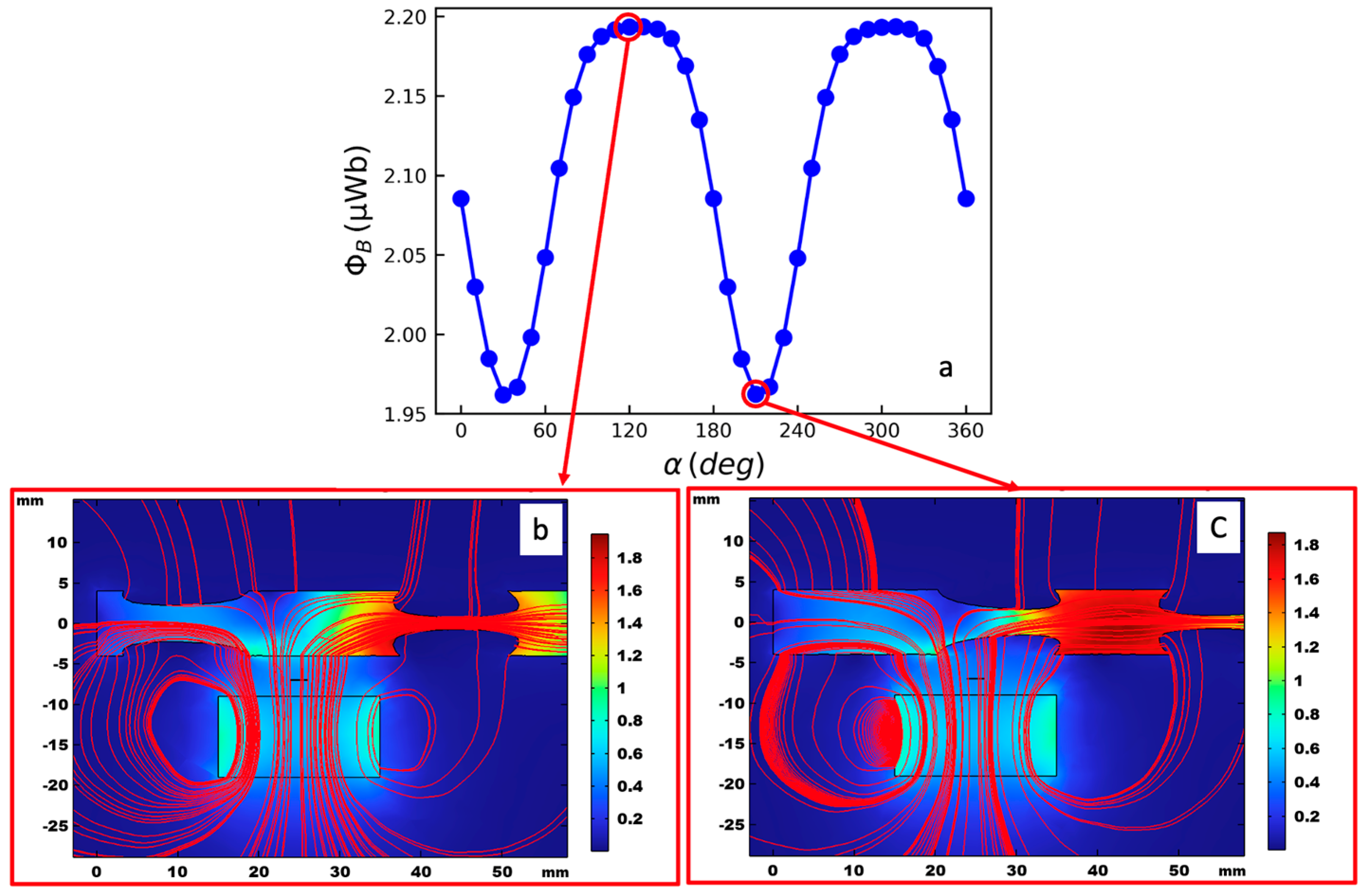 - Lemarquand, G. A variable reluctance sensor. IEEE Trans. Magn. 1989, 25, 3827–3829. [Google Scholar] [CrossRef]