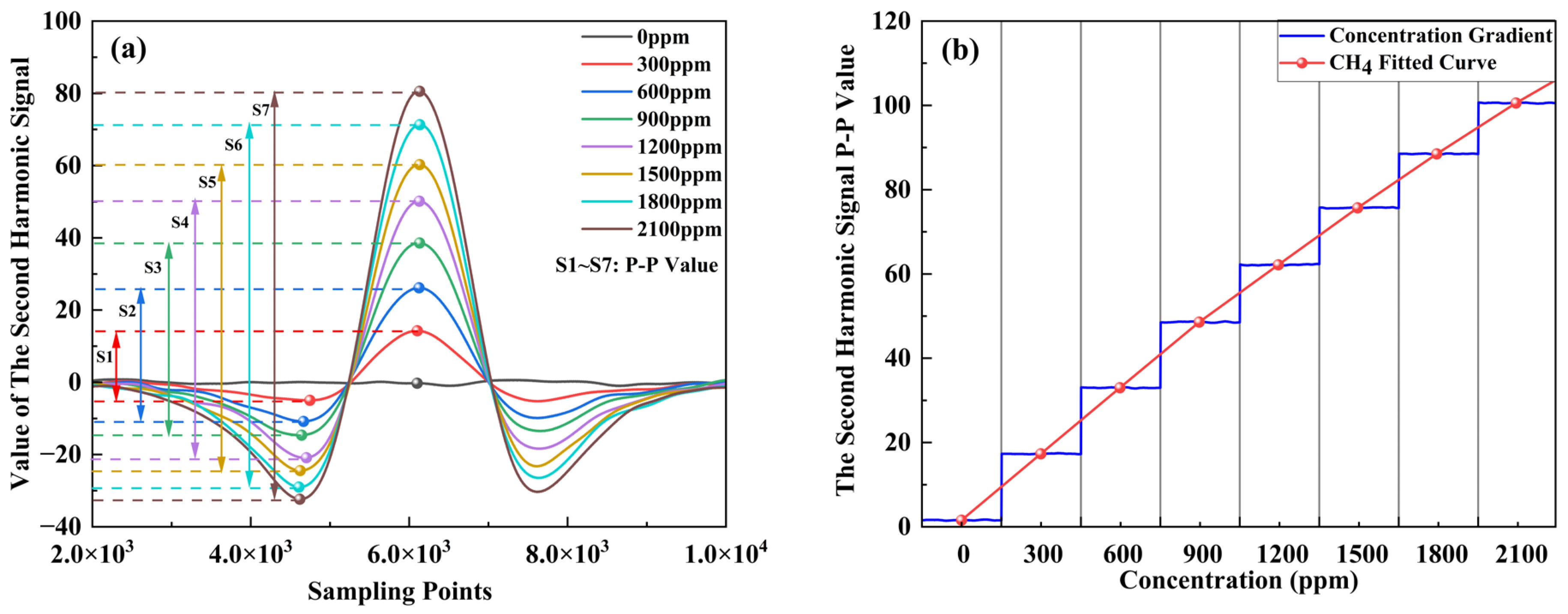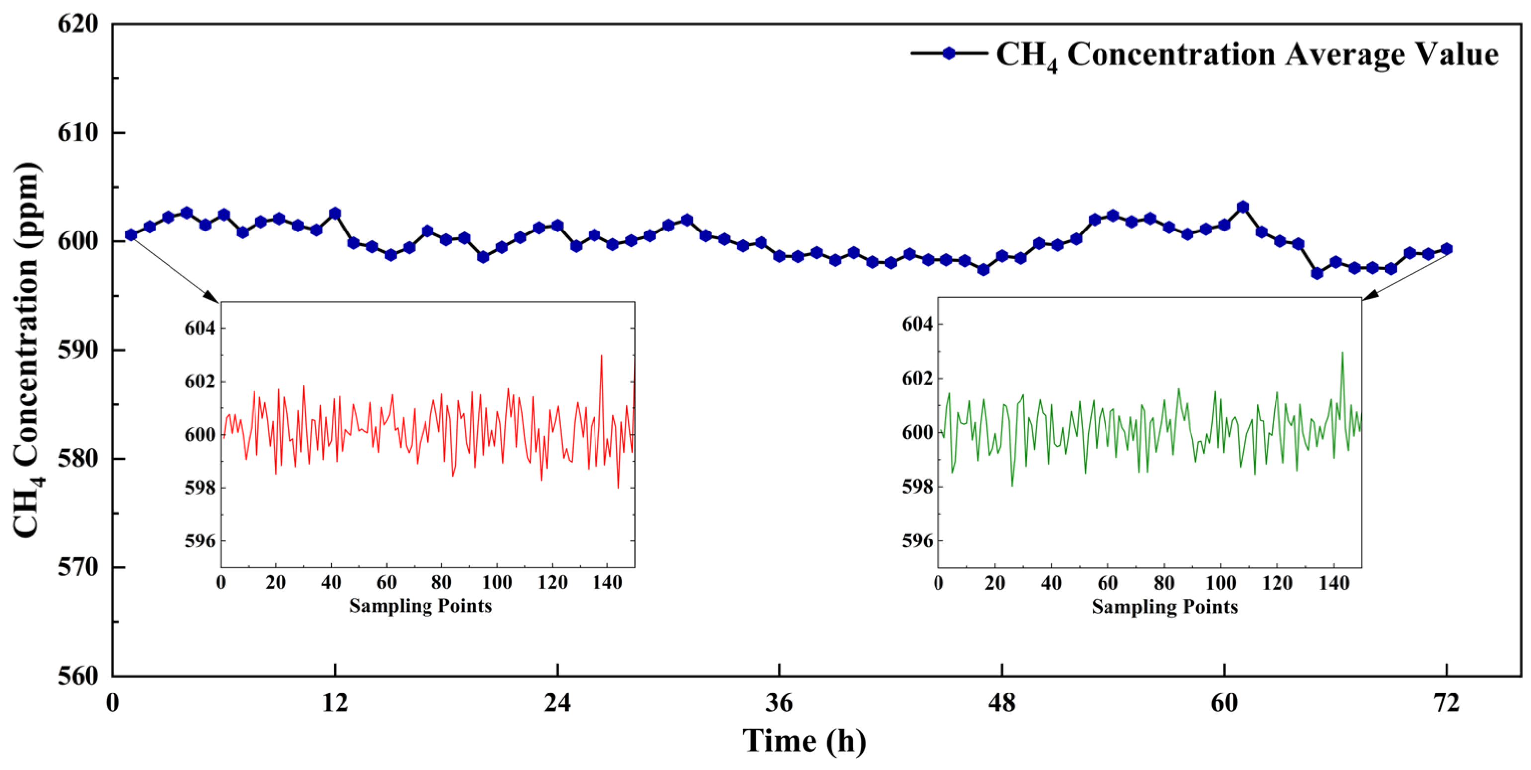 - Yang, C.; Wen, M.; Chen, C.; Li, C.; Huang, J.; Song, L.; Li, Y. Improving the Accuracy of Methane Sensor with Dual Measurement Modes Based on Off-Axis Integrated Cavity Output Spectroscopy Using White Noise Perturbation. Appl. Sci. 2025, 15, 5562. [Google Scholar] [CrossRef]