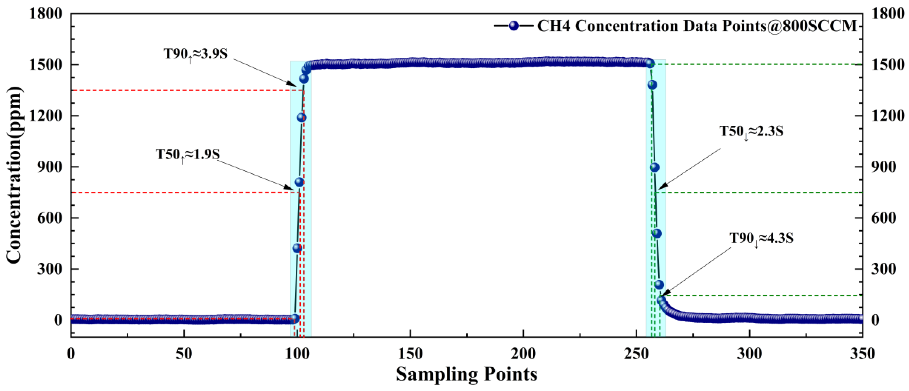 - A spindle-shaped integrating cavity structure is designed to achieve rapid gas concentration replacement and a fast response to changes in gas concentration.