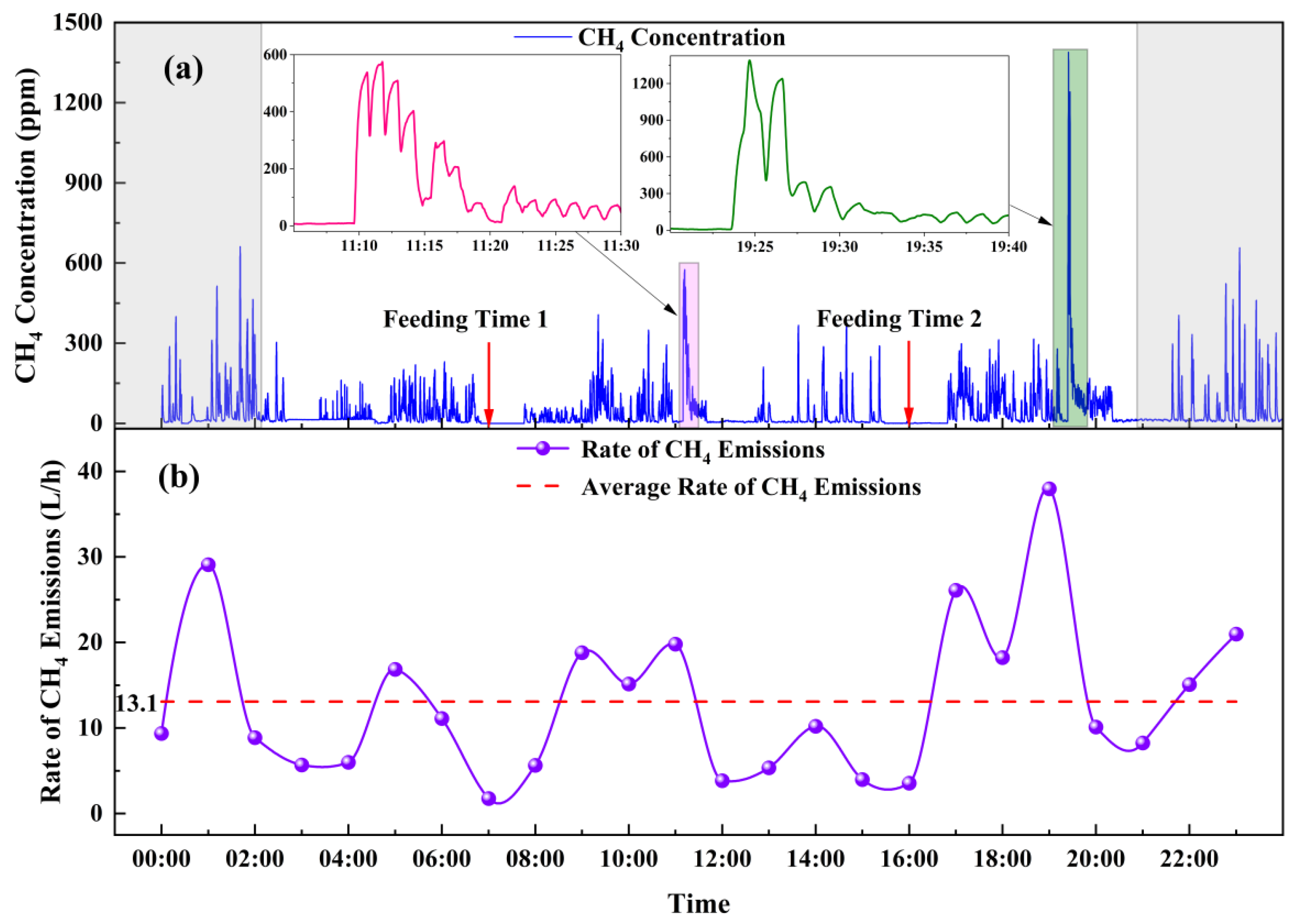 3.3. Monitoring and Analysis of CH4 Emissions from Rumination