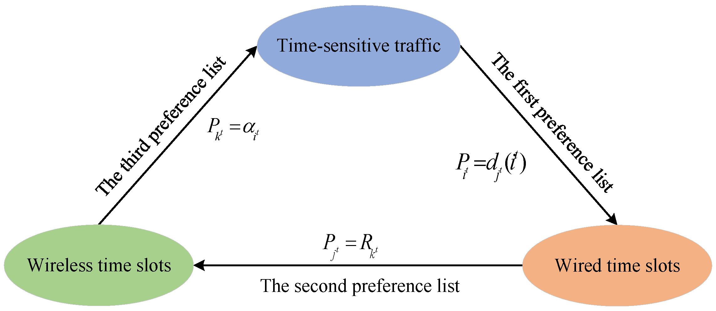 , that is, time-sensitive traffic prefers wired time slots with lower delay; the preference list