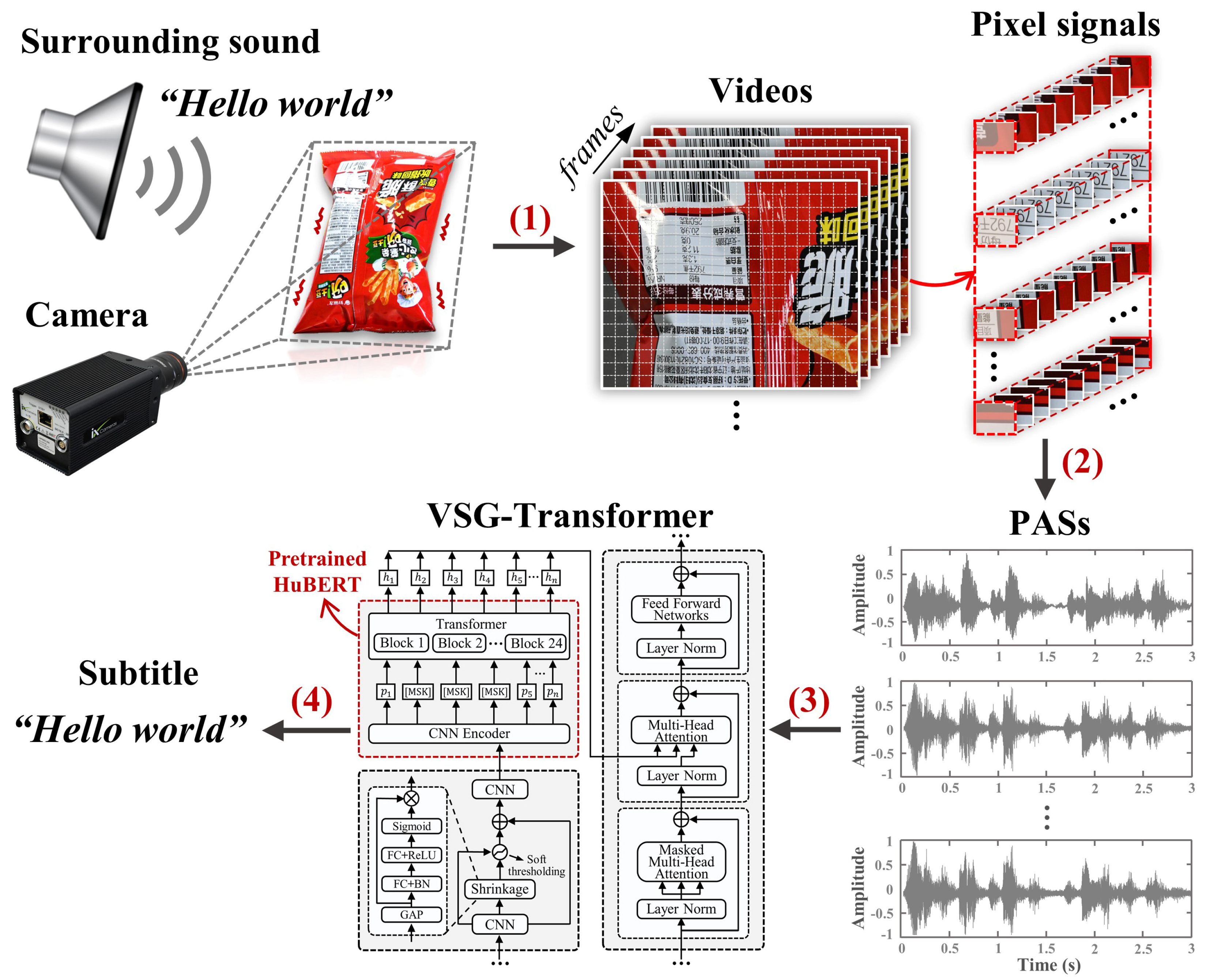 - VSG-Transformer training and testing: Large-scale PASs that encode rich acoustic features are used to construct the PAS dataset employed to train and evaluate VSG-Transformer. A multi-stage transfer learning strategy effectively links the pretrained acoustic representations of HuBERT to the PAS-driven VSG task;