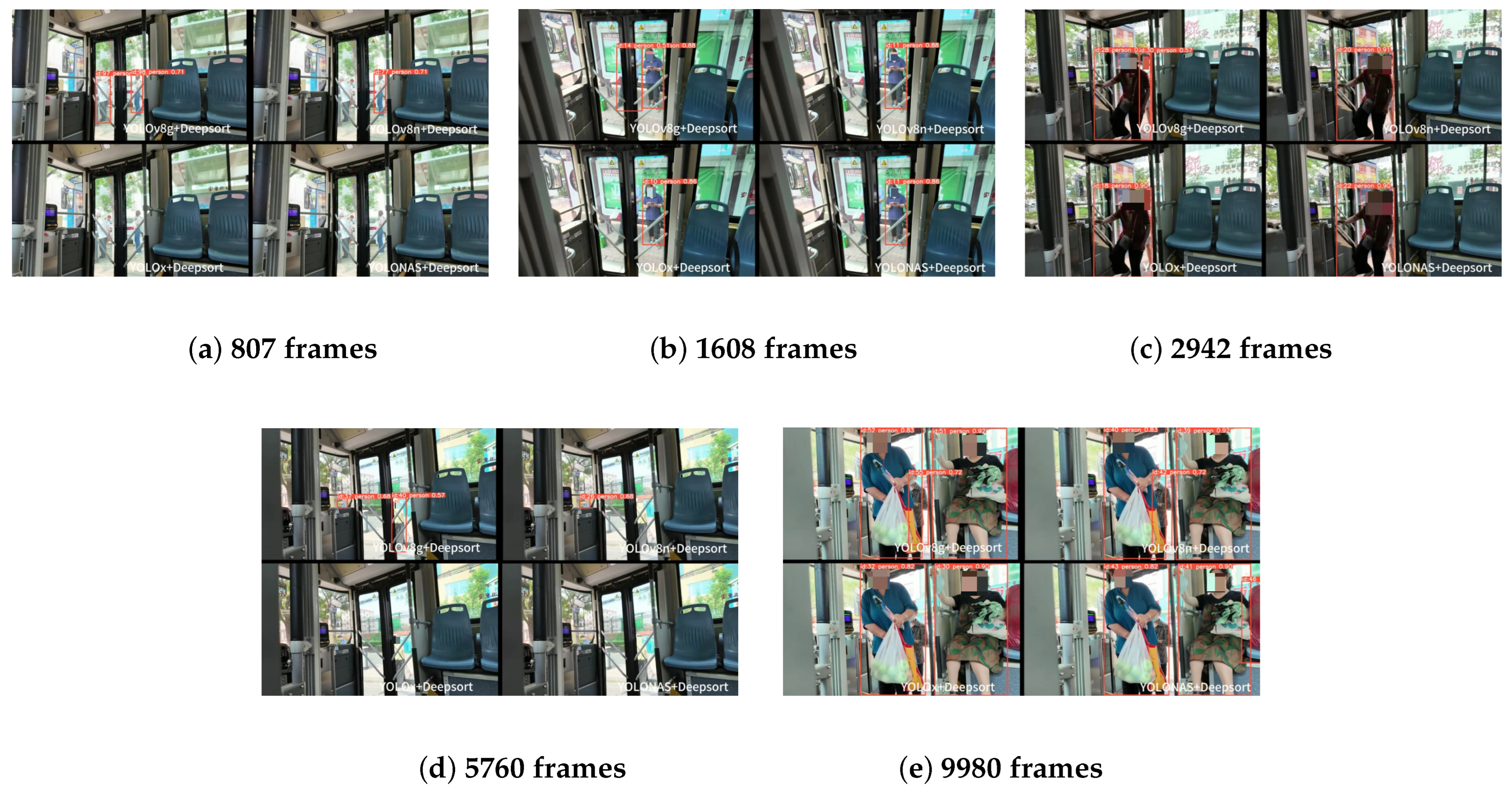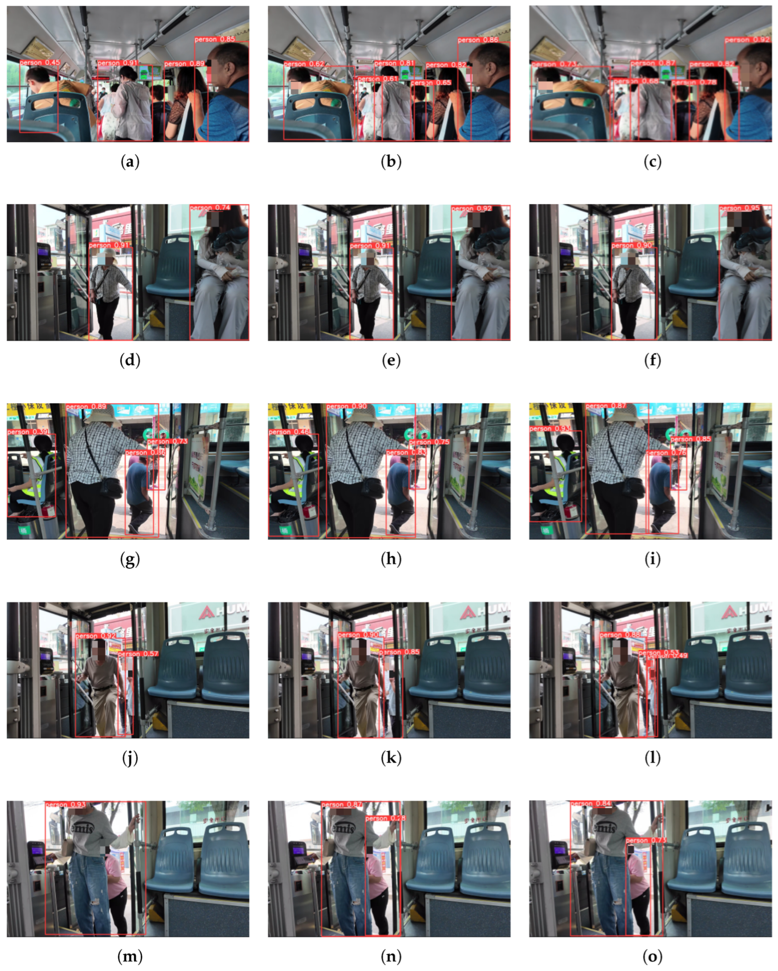 Table 2, the WIoUv3 loss function achieves the optimal performance: its precision reaches 86.3%, which is 17.41% higher than that of SIoU and 2.49% higher than that of GIoU; the mAP50 reaches 74.2%, which is 4.80% higher than that of the basic IoU and 0.27% higher than that of SIoU. Meanwhile, both the recall rate (63.1%) and frame rate (460 FPS) can meet the real-time application requirements of bus scenarios. Its core advantages lie in: reducing the gradient interference of extreme samples through the dynamic non-monotonic focusing mechanism, strengthening the training weight of anchor boxes with medium quality, effectively improving the localization accuracy of detection boxes for passengers with non-standard postures, and perfectly adapting to the complex detection needs of bus scenarios.