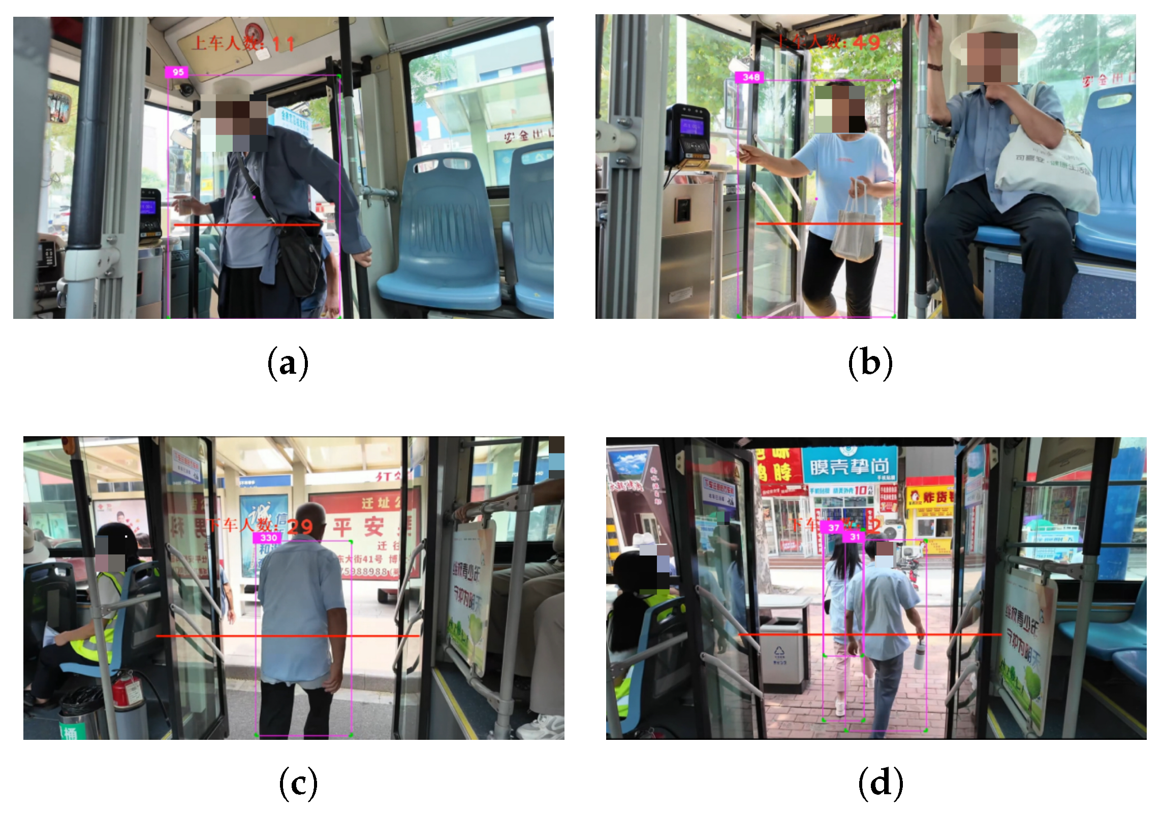 The design of the bounding box loss function directly impacts detection box localization accuracy in target detection. This paper adopts the WIoU loss function, which uses a dynamic non-monotonic focusing mechanism to reduce the training weight of extreme samples with large gradients and increase that of medium-quality anchor boxes, avoiding gradient oscillation and accelerating stable convergence. It also dynamically adjusts gradient gain based on IoU value, making the loss function more sensitive to small positional errors of passenger targets, thus speeding up bounding box localization convergence and meeting detection requirements for small targets and passengers in non-standard postures in bus scenarios.