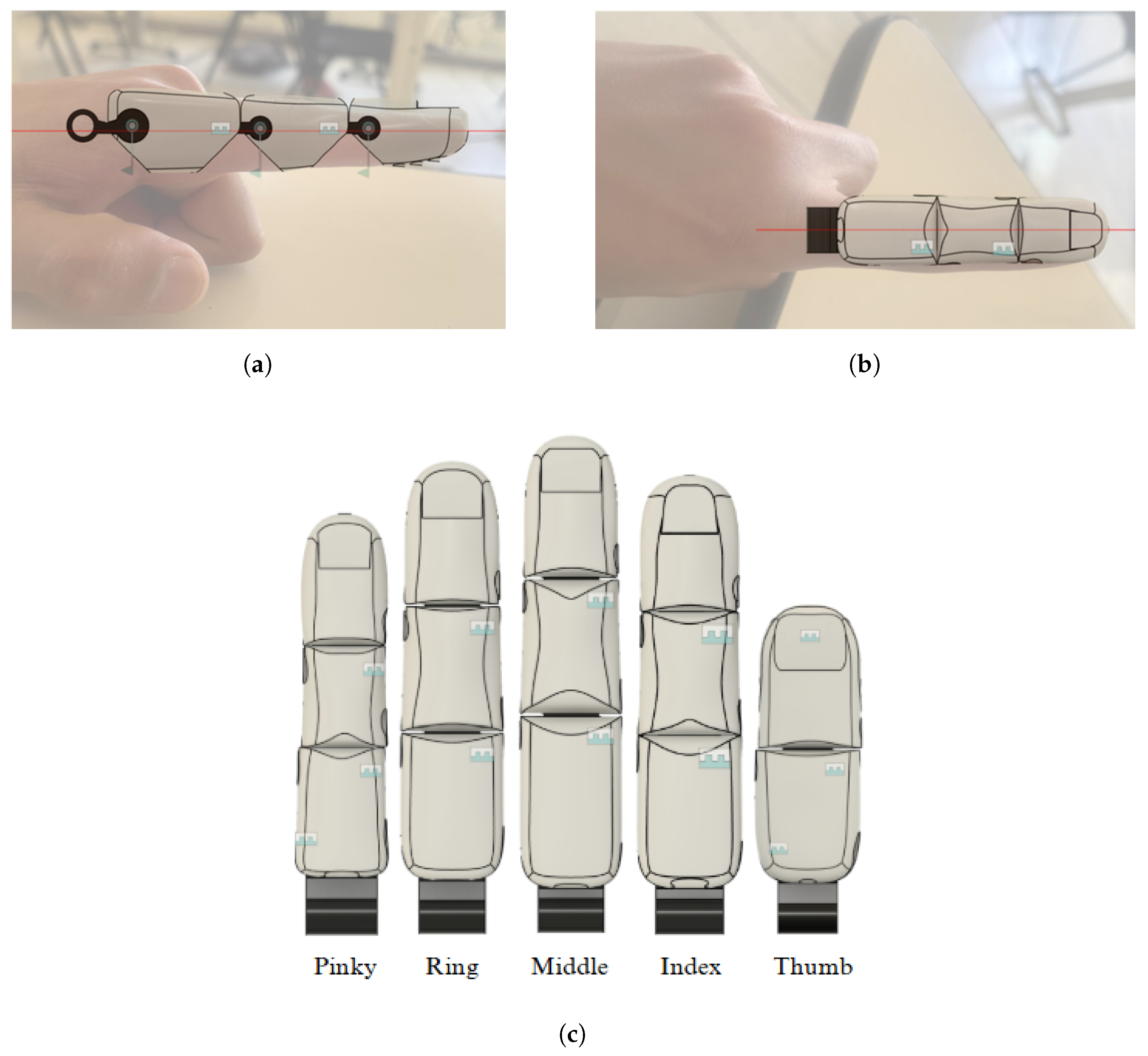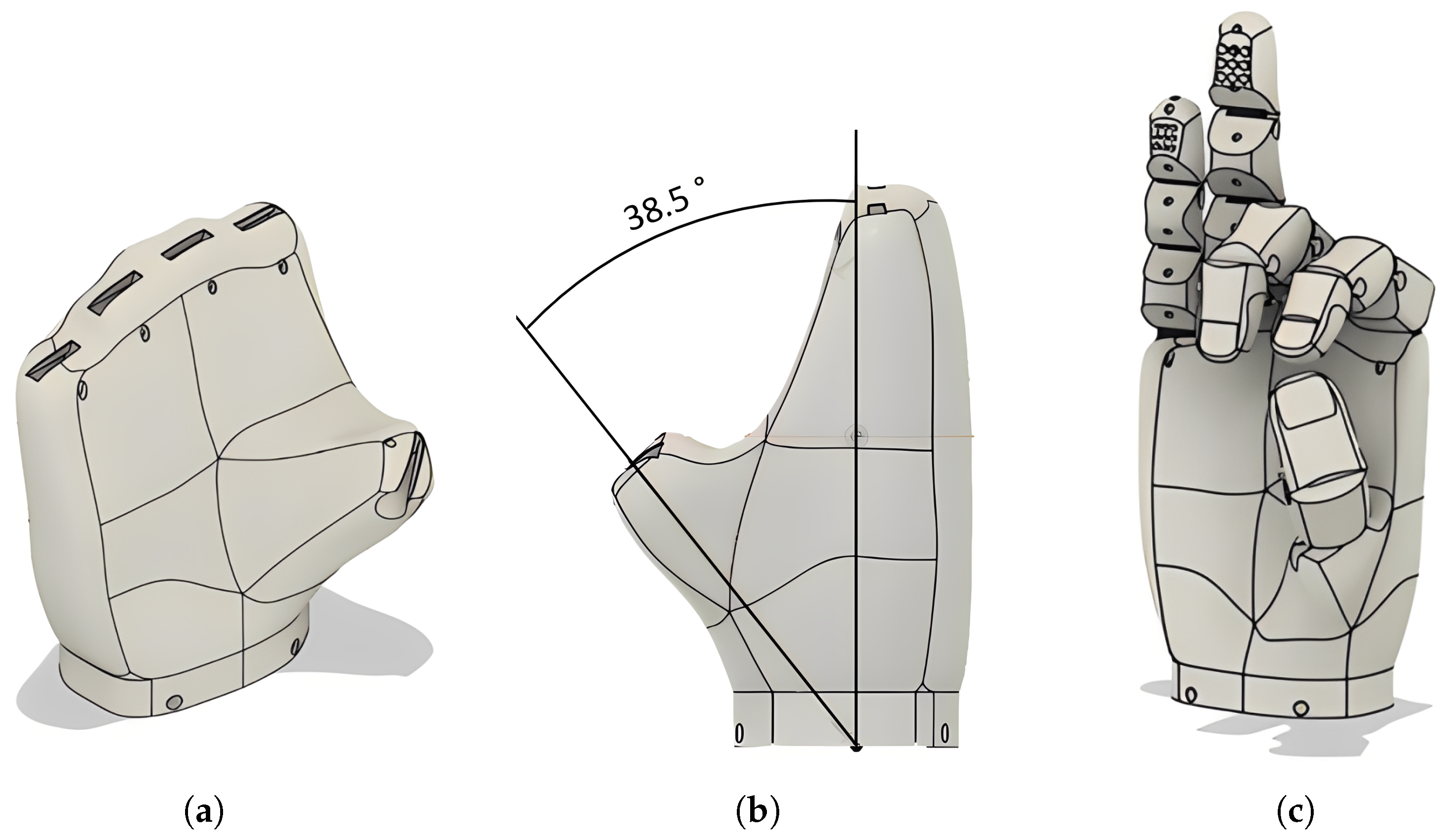 From a mechanical perspective, the soft, tendon-driven design enabled smooth and adaptive motion without relying on additional force, position, or current sensors. This structural simplification reduces system complexity and cost while maintaining functional stability. Furthermore, the geometric design, based on DIN 33402 anthropometric proportions and adjusted using measurements from a real hand, contributed to an improved aesthetic appearance, which is an important factor for user acceptance in daily-use prostheses.