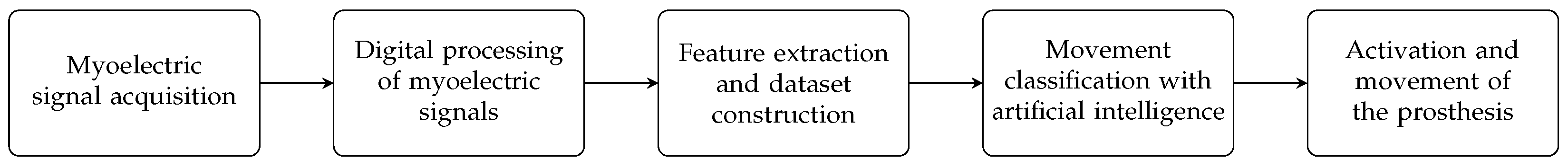 19]. In contrast, EMG-based control remains the most practical solution for daily-use prostheses, enabling high gesture recognition accuracy with relatively simple processing schemes. However, achieving reliable performance on embedded platforms requires careful model simplification and latency-aware design [