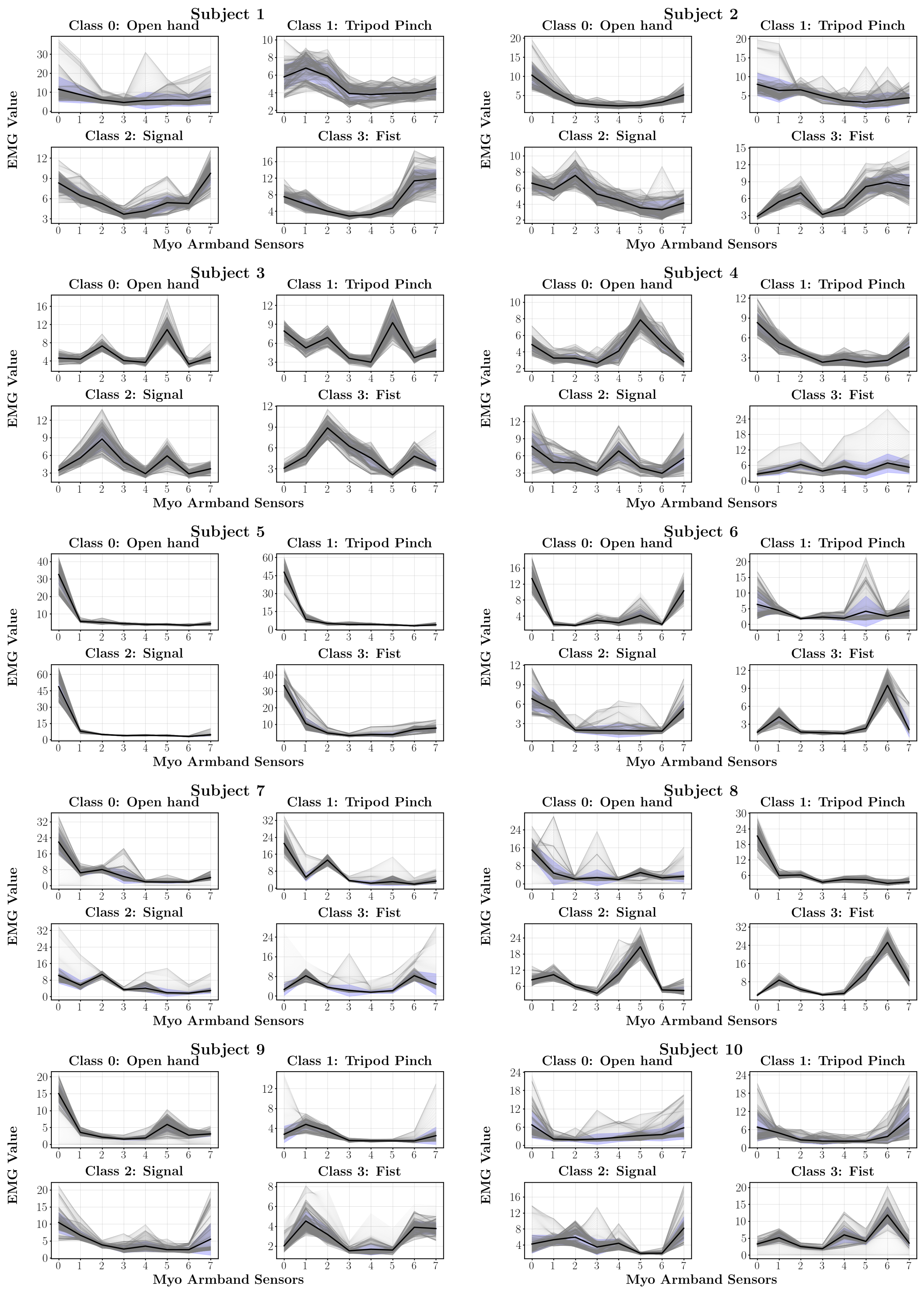 Figure 14). This behavior, widely reported in the literature, is attributed to individual anatomical and physiological factors that limit the generalizability of surface EMG signals [