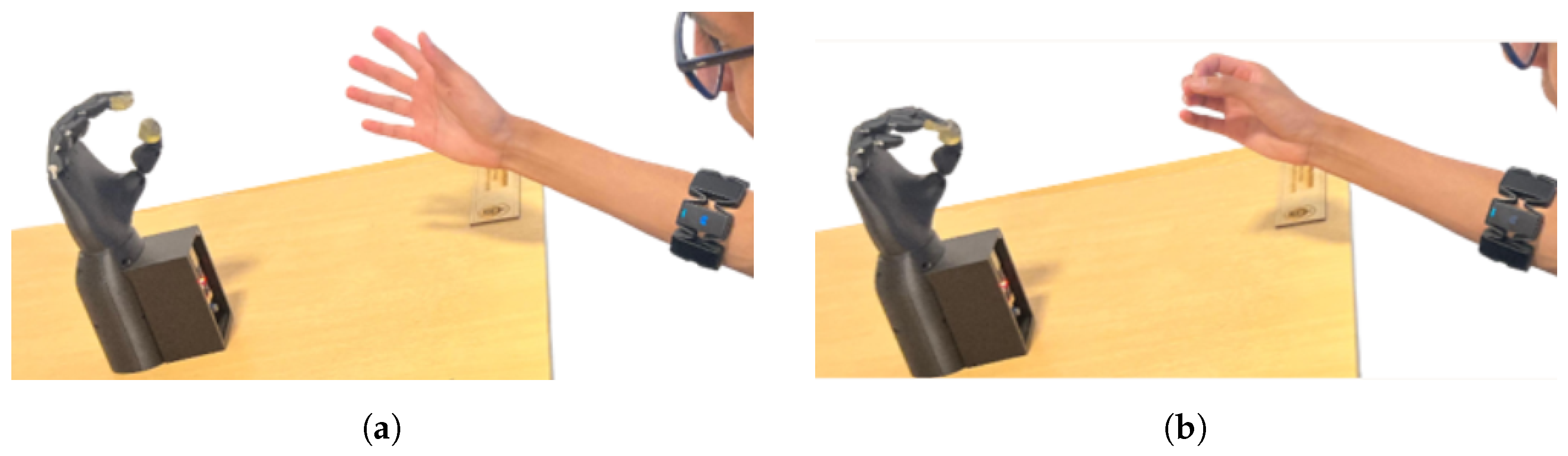 Section 3.4. For all experimental evaluations, the prosthesis was secured on a stable surface and operated without direct physical attachment to the user, ensuring controlled and repeatable testing conditions.