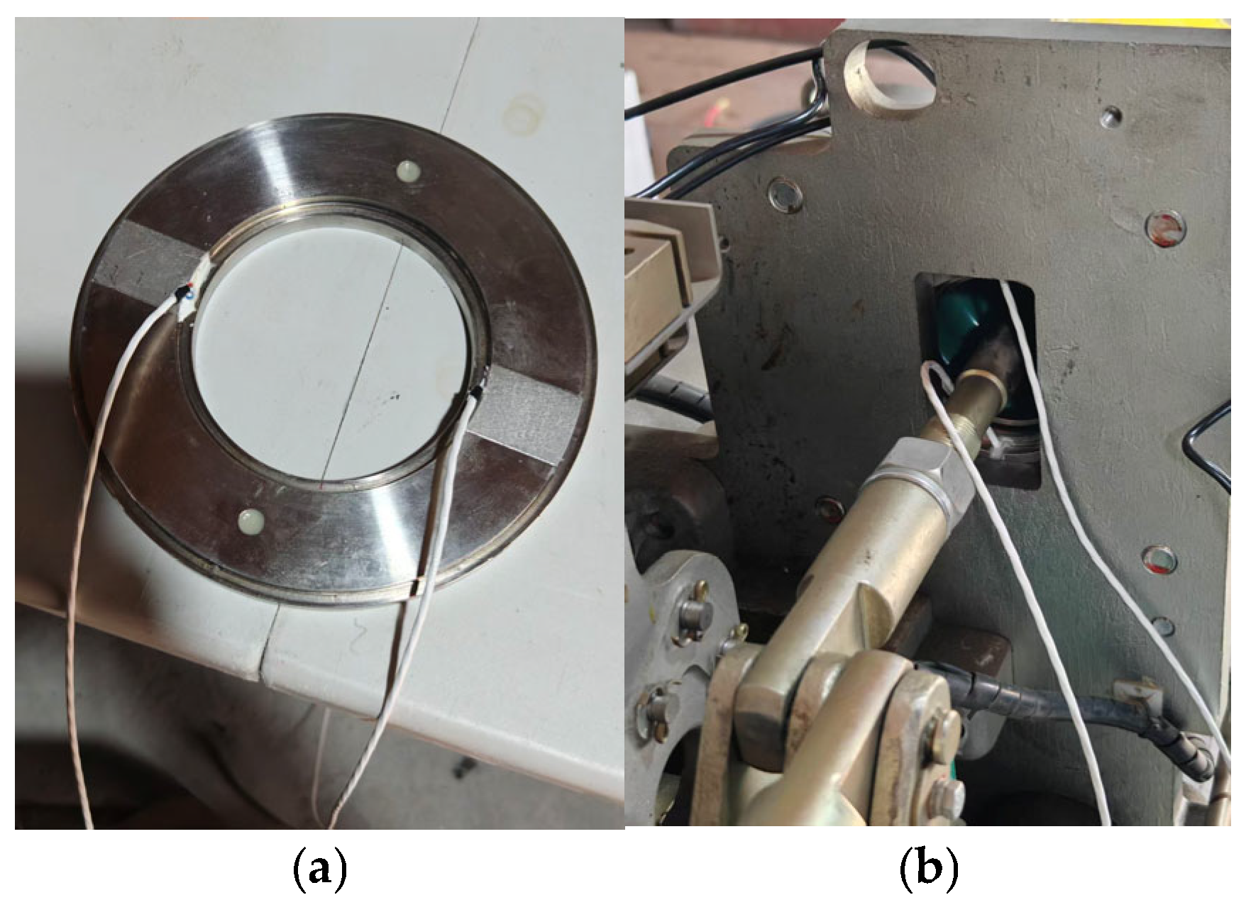 Figure 4, this study selected a ring-type MEMS pressure sensor based on the principle of hydraulic conduction. Its core mechanism lies in using hydraulic oil as an intermediate medium to convert the axial mechanical force generated by spring compression into fluid pressure within a hydraulic chamber, thereby achieving long-term precise perception of static elastic force. In terms of engineering deployment, the sensor adopts an embedded installation scheme, where it was placed between the spring and the end pressure plate. Its unique coaxial ring configuration ensures non-destructive monitoring without interfering with the original spring assembly structure. Sensors of different sizes were developed for the opening and closing spring sleeves respectively to meet the measurement needs of opening pressure and closing pressure.
