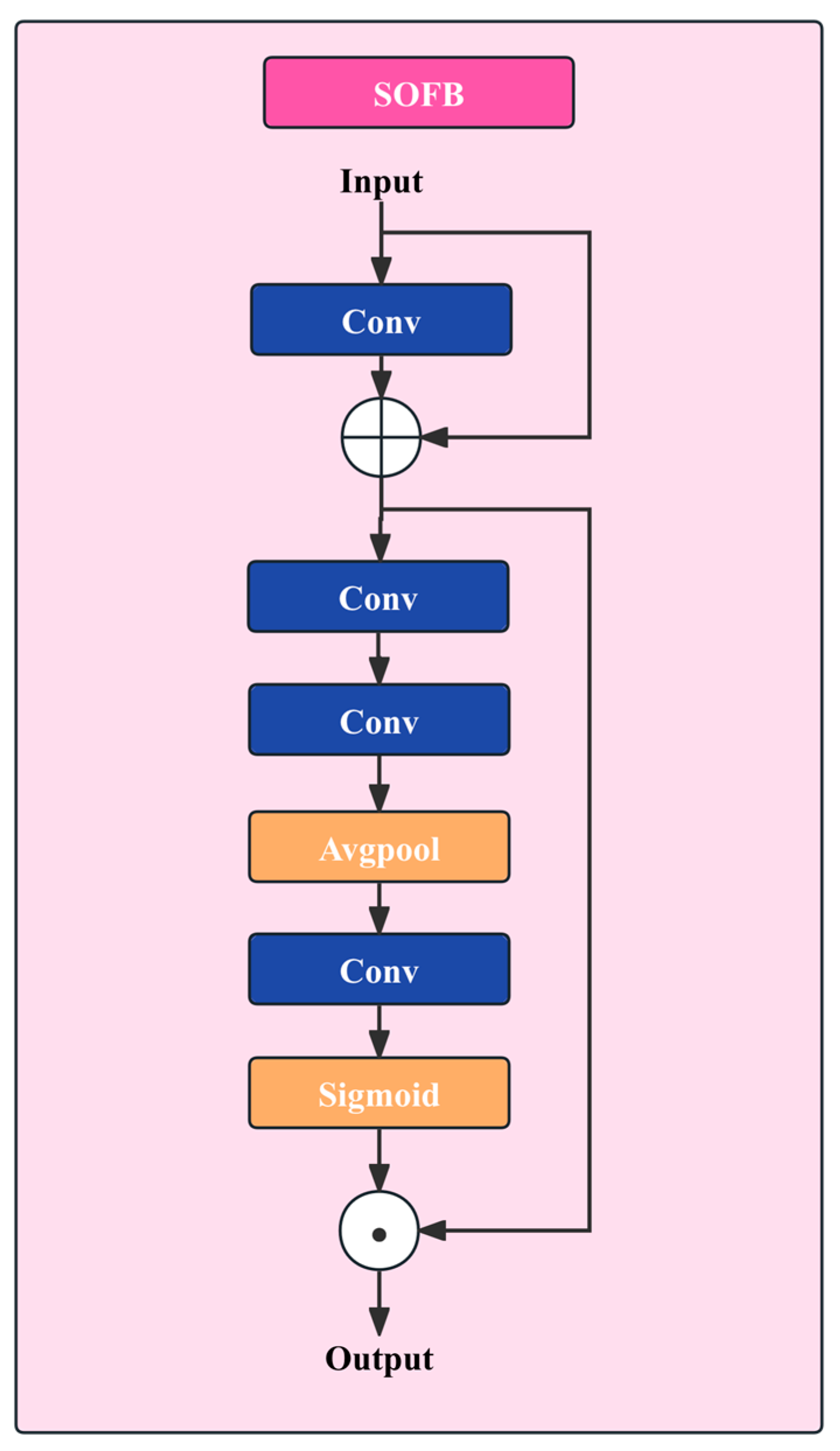 - SOFB (Small Object Focus Block): Strengthens the expression of micro-crack details through high-frequency enhancement and robust channel attention, thereby alleviating background-dominated statistics arising from sparse small targets, thereby achieving “micro-feature enhancement”.
