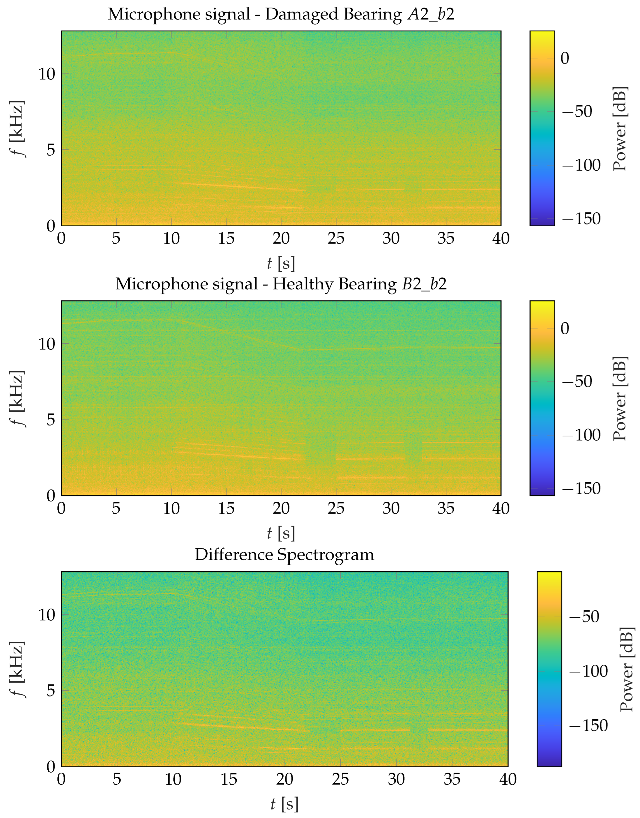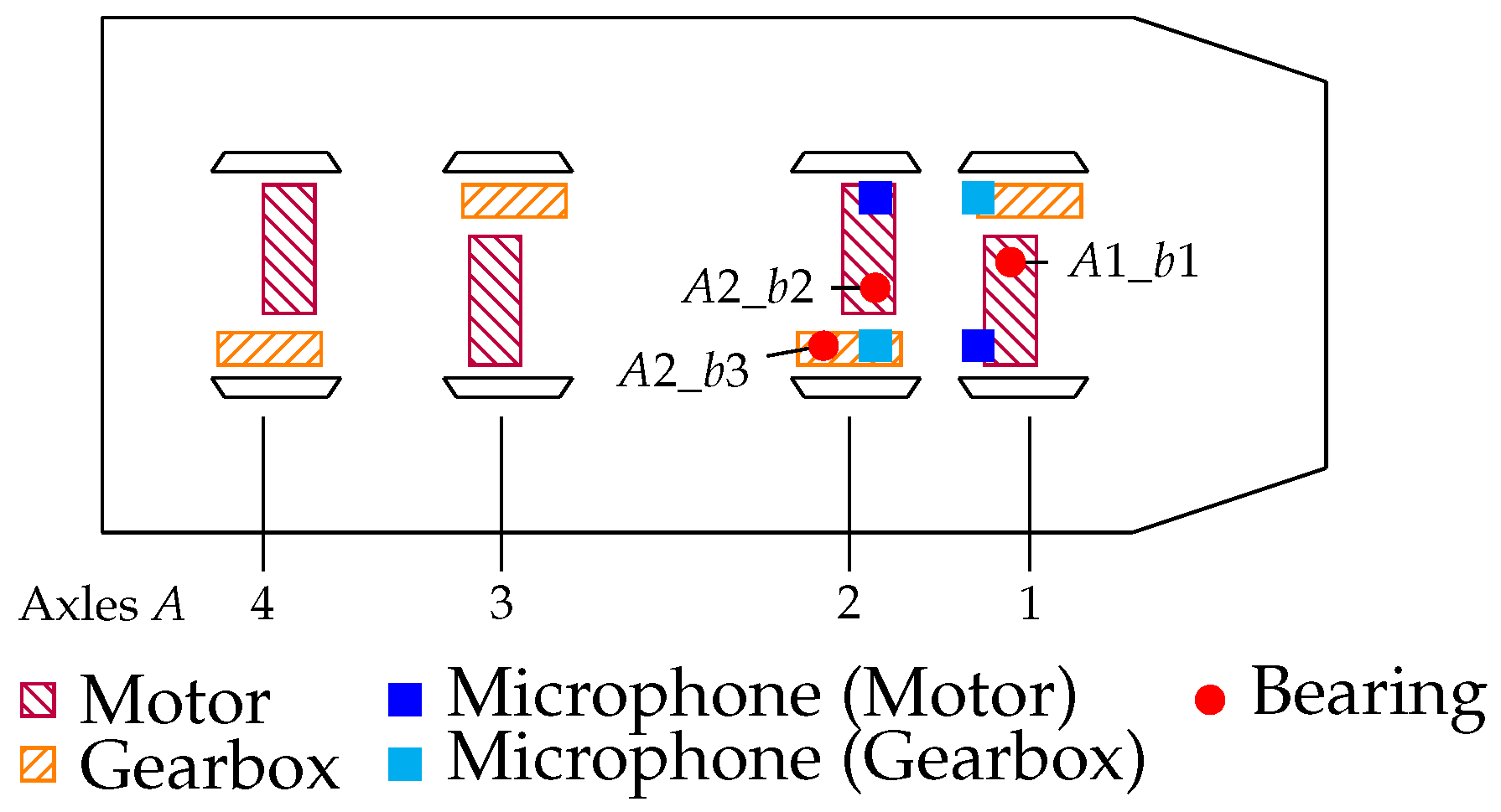- Kreuzer, M.; Schmidt, D.; Wokusch, S.; Kellermann, W. Airborne sound analysis for the detection of bearing faults in railway vehicles with real-world data. In Proceedings of the 2023 IEEE International Conference on Prognostics and Health Management (ICPHM), Montreal, QC, Canada, 5–7 June 2023; pp. 232–238. [Google Scholar] [CrossRef]