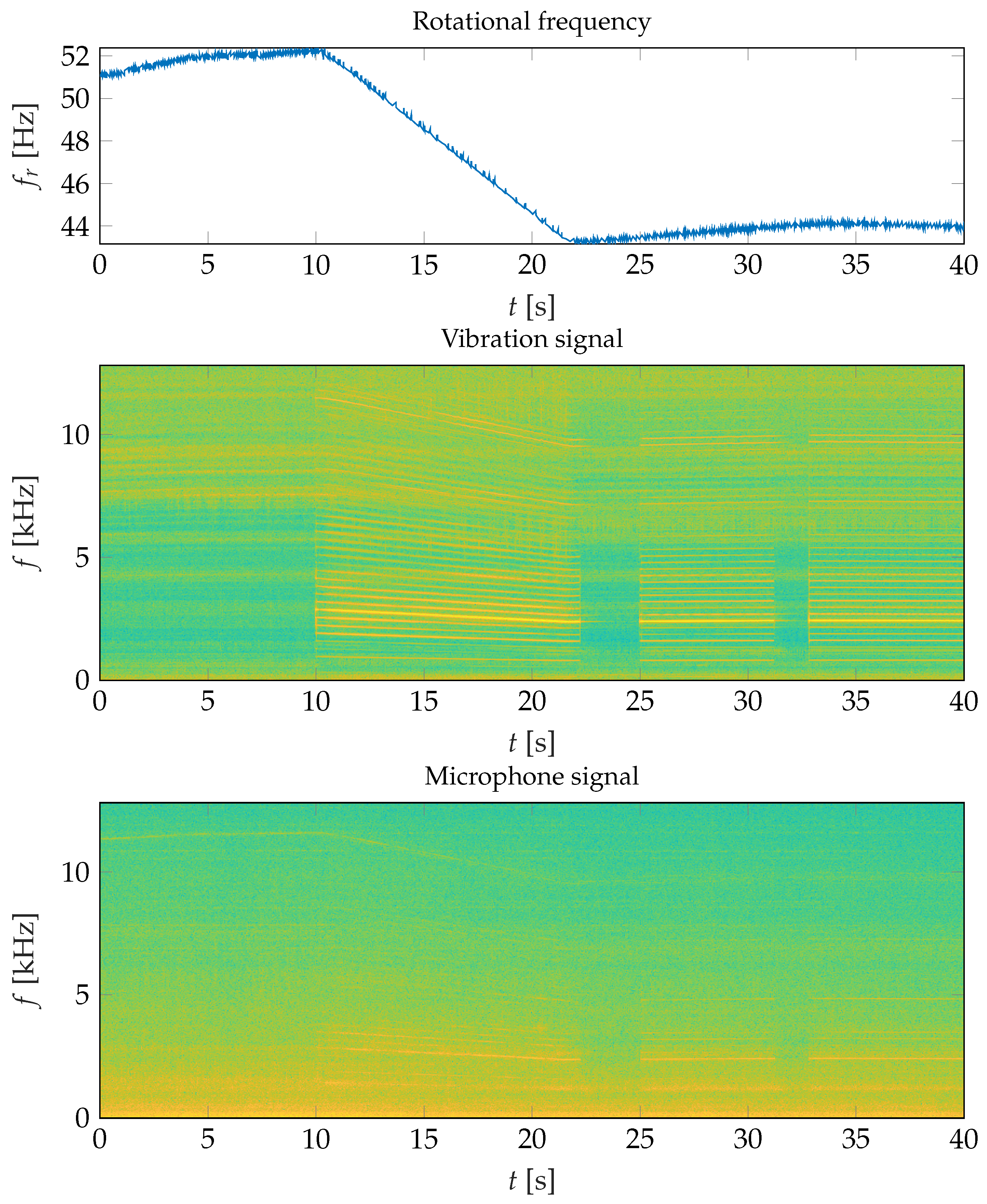- Kreuzer, M.; Schmidt, A.; Kellermann, W. Novel features for the detection of bearing faults in railway vehicles. In Proceedings of the Inter-Noise 2021—The 50th International Congress and Exposition on Noise Control Engineering, Washington, DC, USA, 1–4 August 2021; pp. 1–11. [Google Scholar]