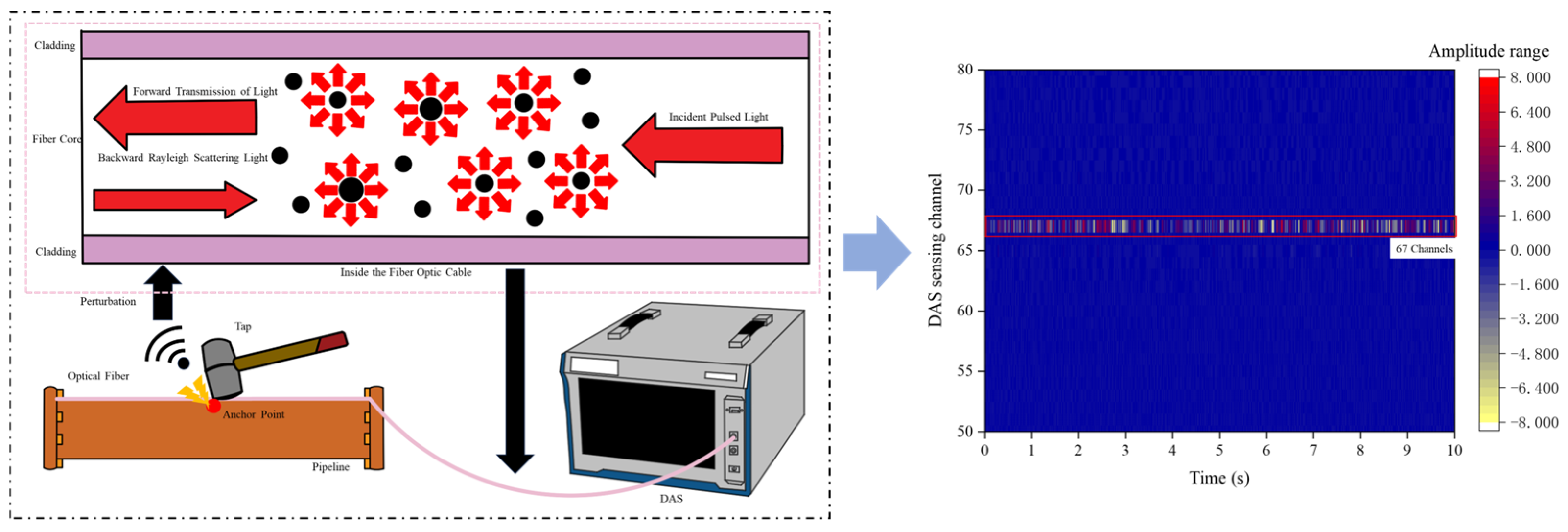 10]. Distributed acoustic sensing (DAS) offers distributed, continuous monitoring with high sensitivity and immunity to electromagnetic interference, demonstrating significant potential for long-distance pipeline safety monitoring applications [