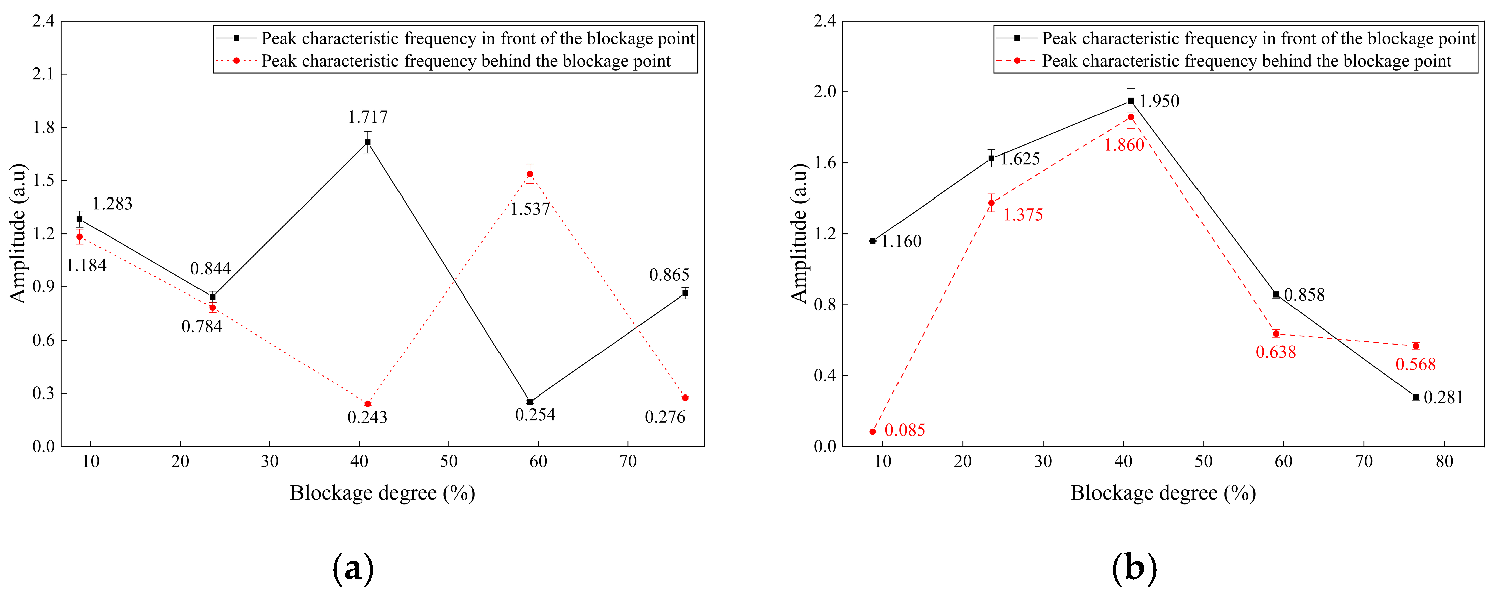 Least squares fitting produced quantitative inversion models for both pre- and post-blockage point relationships. Each blockage test was conducted in triplicate; error bars in