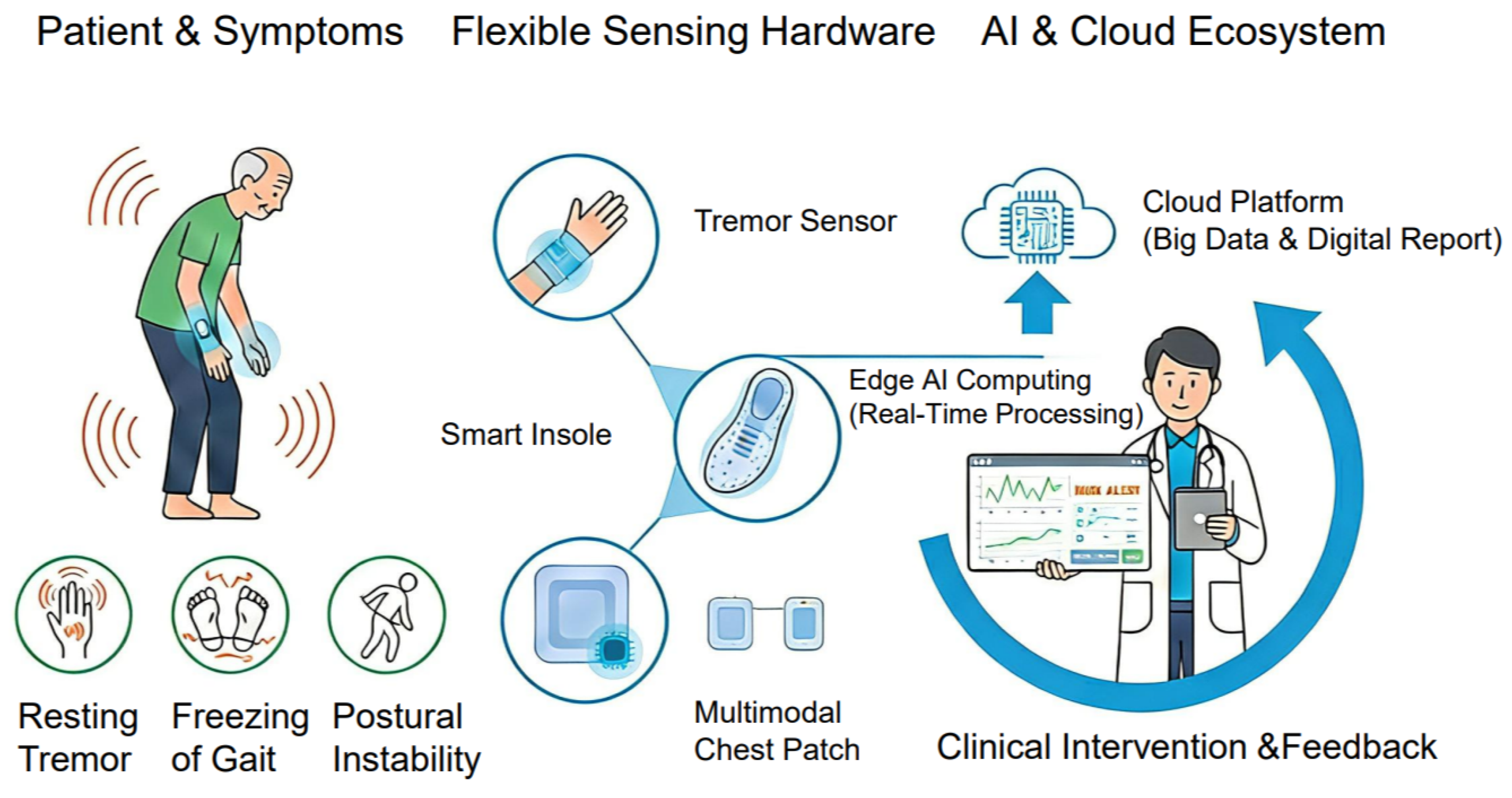 Jin J, Jiang Y, Zhou Y, Zhu W, Hua J, Cheng W, Shi Y, Pan L. AI-Enabled Flexible Sensing Ecosystems for Parkinson’s Disease: Advancing Digital Biomarkers and Closed-Loop Interventions. Sensors. 2026; 26(7):2071. https://doi.org/10.3390/s26072071