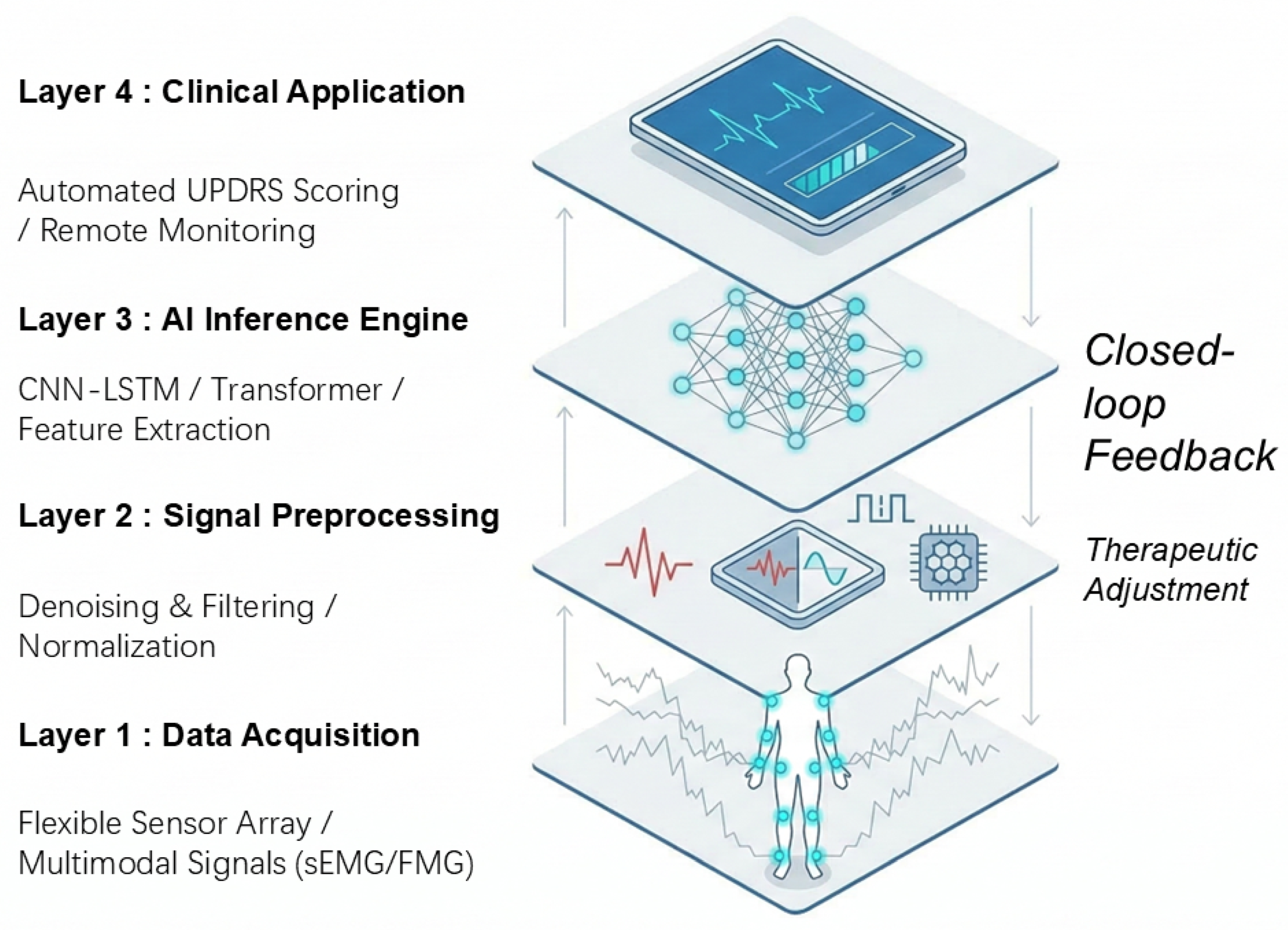 APA StyleJin, J., Jiang, Y., Zhou, Y., Zhu, W., Hua, J., Cheng, W., Shi, Y., & Pan, L. (2026). AI-Enabled Flexible Sensing Ecosystems for Parkinson’s Disease: Advancing Digital Biomarkers and Closed-Loop Interventions. Sensors, 26(7), 2071. https://doi.org/10.3390/s26072071
