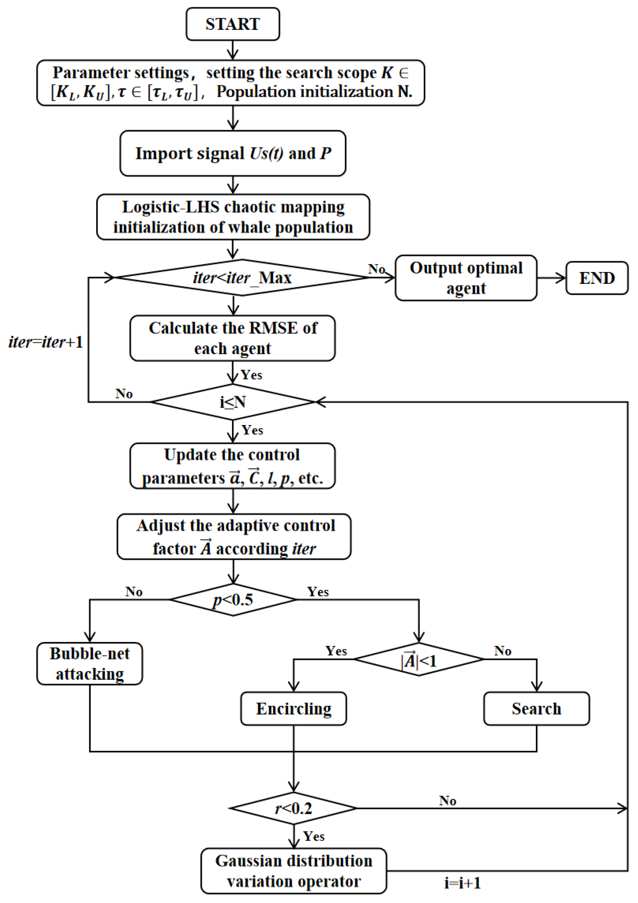 2.2. Improved Whale Optimization Algorithm (IWOA)
