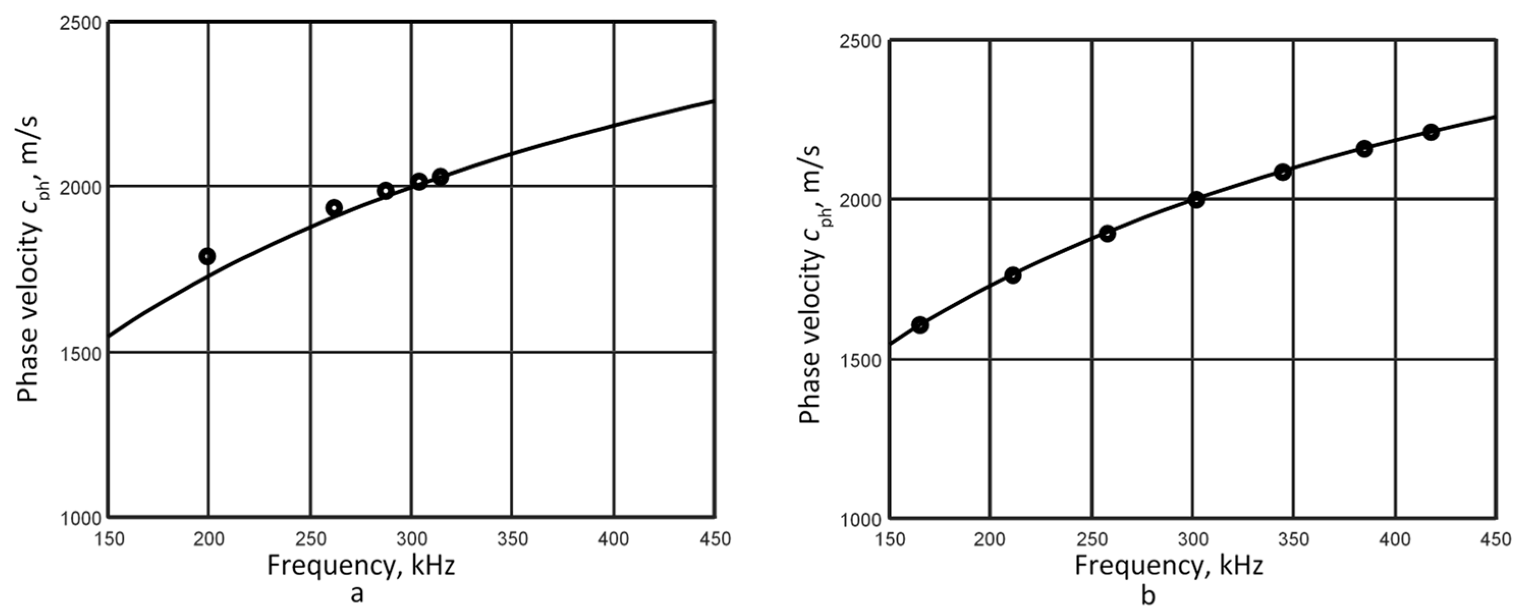 - Draudvilienė, L.; Meškuotienė, A. A Tool to Estimate the Phase Velocity Dispersion of Different Lamb Wave Modes Using Datasets of Two Signals Measured at Identical Distances. IEEE Trans. Instrum. Meas. 2025, 74, 1–9. [Google Scholar] [CrossRef]