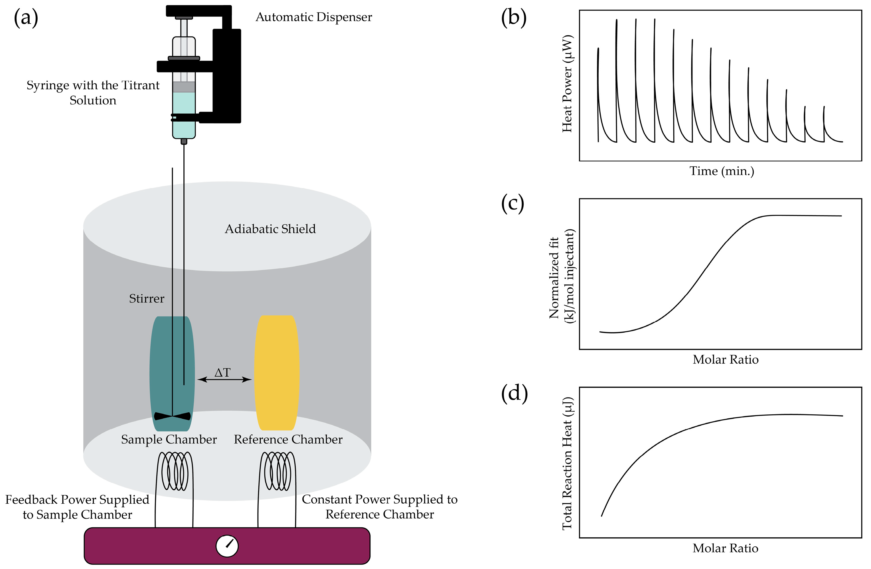 - Jelesarov, I.; Bosshard, H.R. Isothermal Titration Calorimetry and Differential Scanning Calorimetry as Complementary Tools to Investigate the Energetics of Biomolecular Recognition. J. Mol. Recognit. 1999, 12, 3–18. [Google Scholar] [CrossRef]