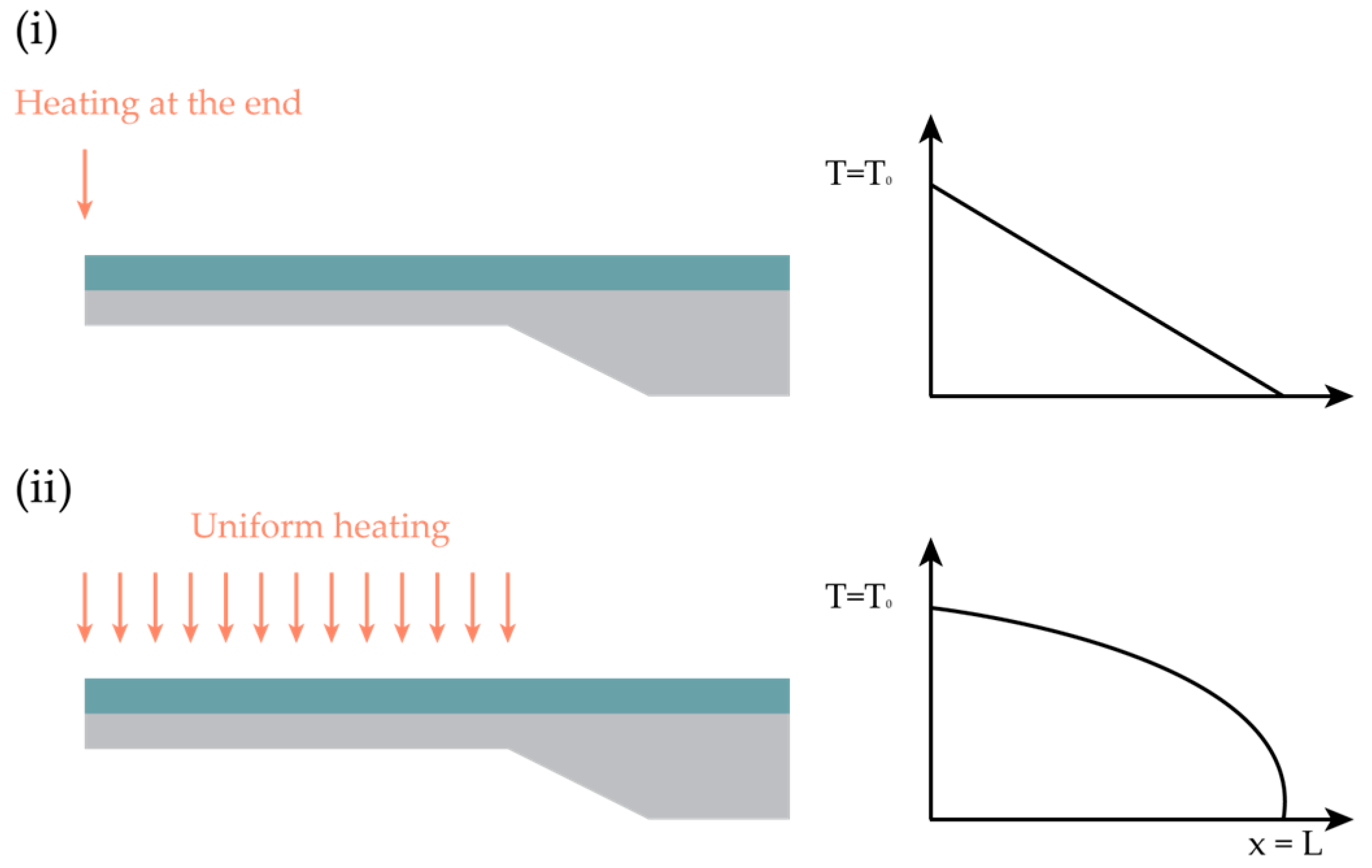 - The heat is uniformly absorbed along the cantilever’s length, resulting in a parabolic temperature profile.