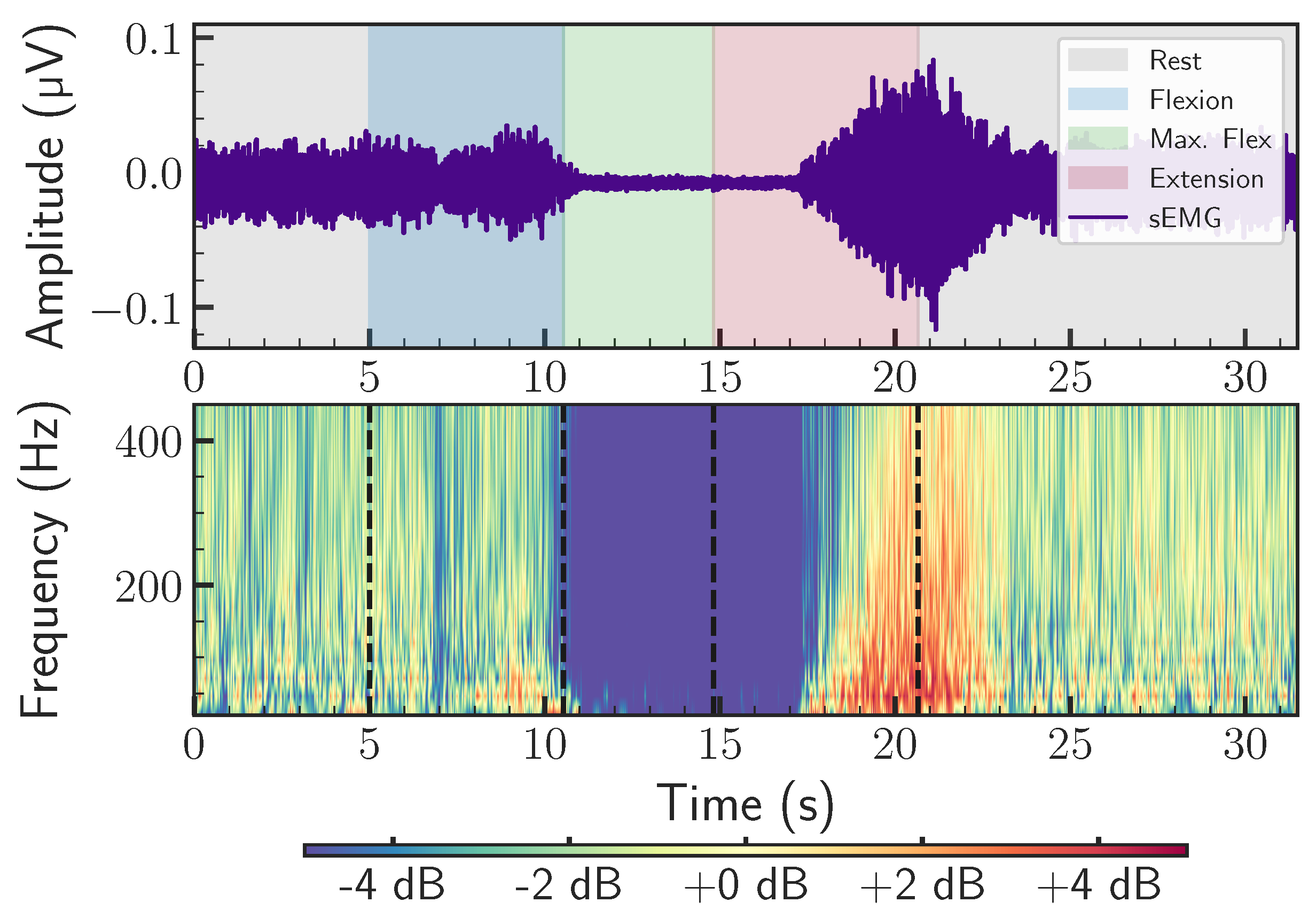 sEMG signals are analyzed using Morlet Continuous Wavelet Transform (CWT) to dissect the signal’s time–frequency components (Equation (