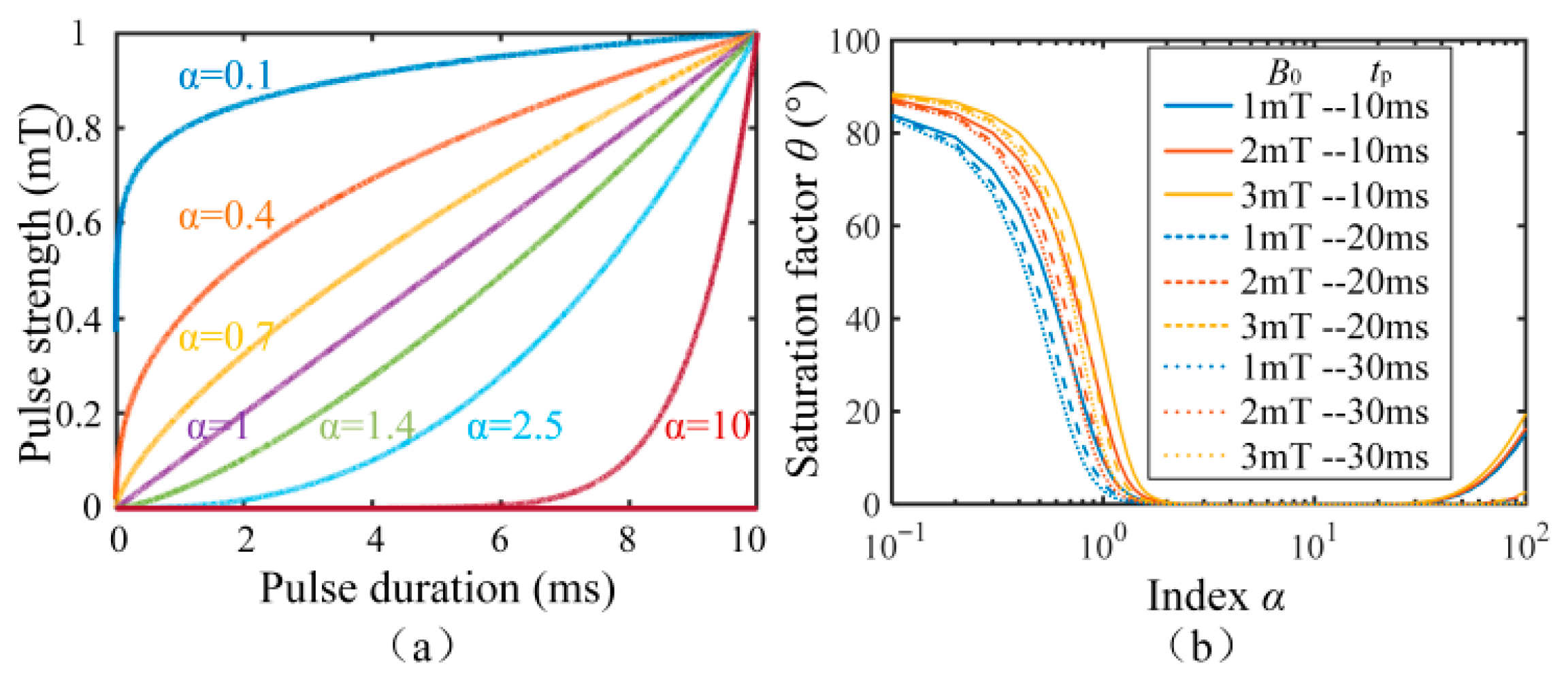 4.1. The Influence of 90° Pulse Waveform on Polarization Efficiency