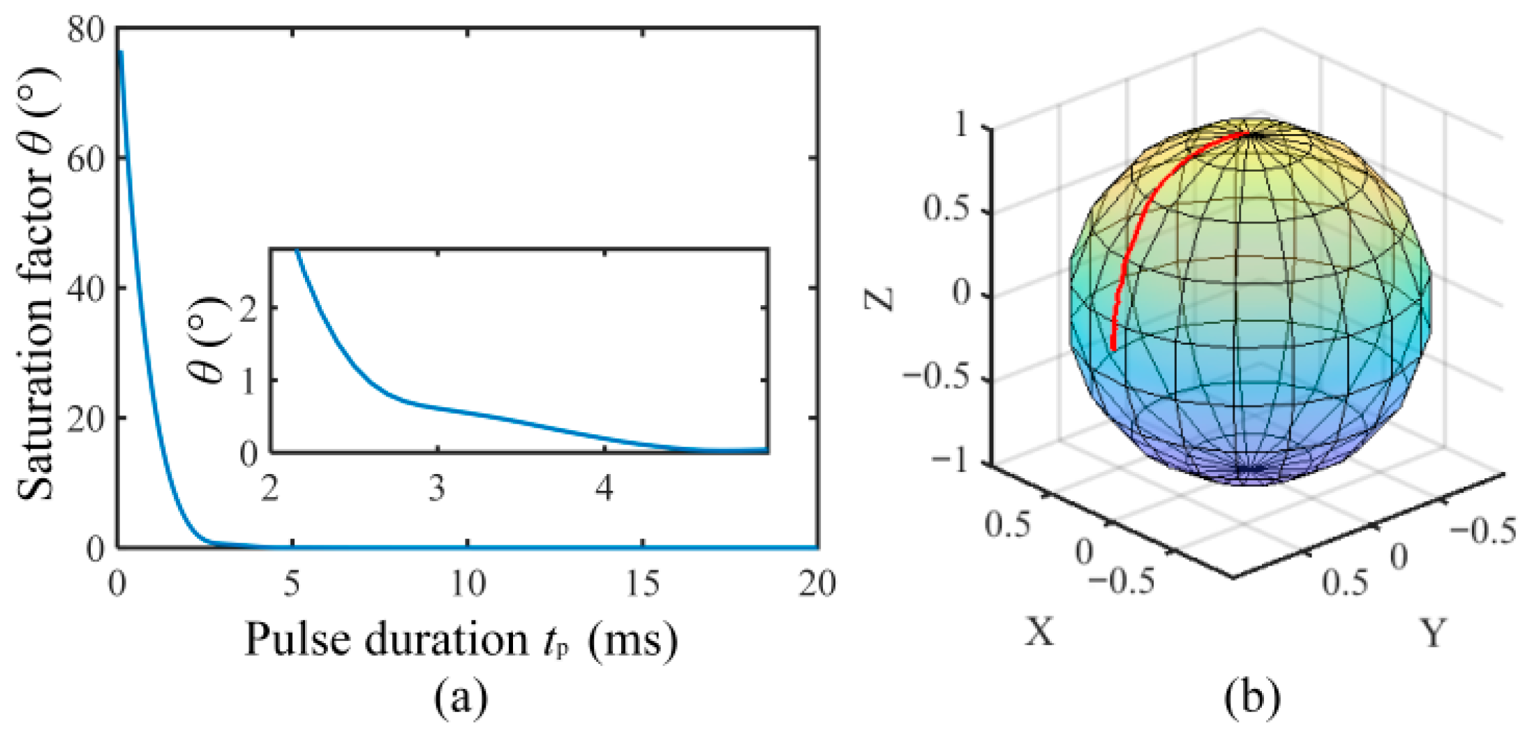 4.3. The Impact of 90°Pulse Duration on Polarization Efficiency