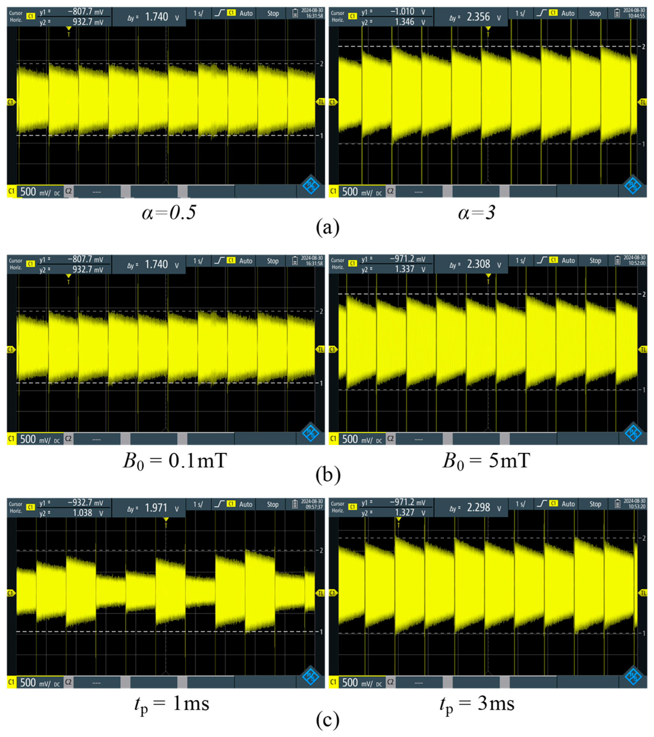 5.2. Experimental Results of Different 90° Pulse Parameters