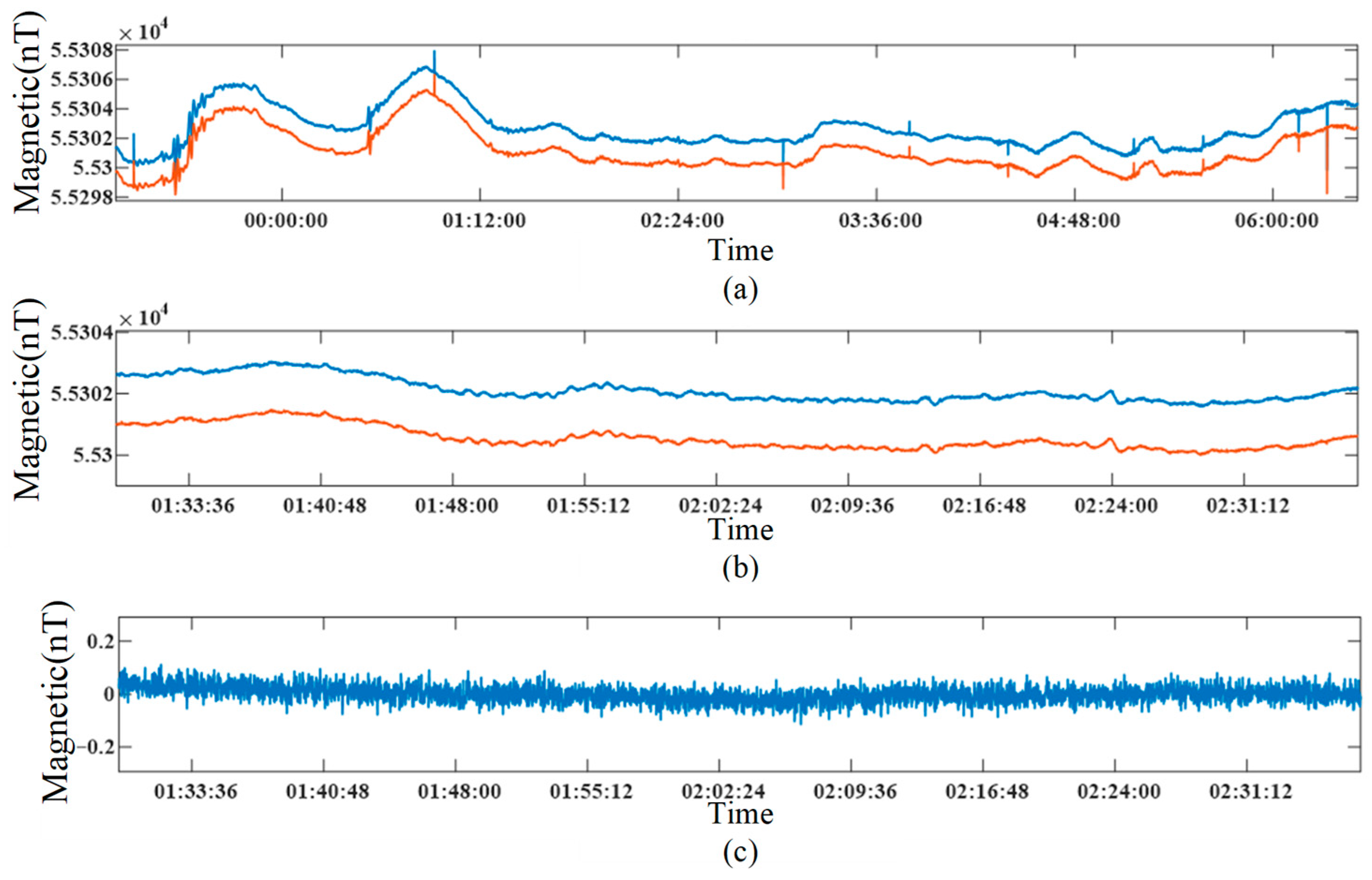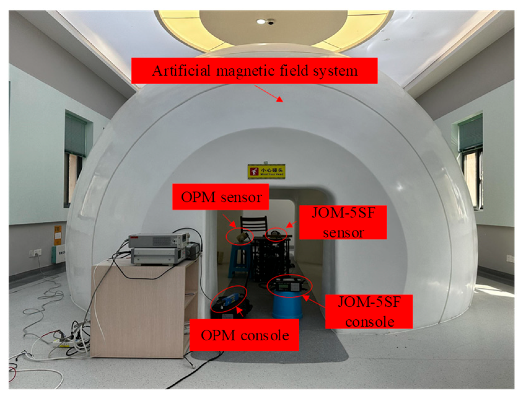 - Zhang, J.; Song, X.; Jia, L.; Sun, H.; Qi, S.; Wu, Z.; Liu, G. Enhancement of Magnetic Field Disturbance Suppression for Wearable Optically Pumped Magnetometers. IEEE Trans. Instrum. Meas. 2025, 74, 9515311. [Google Scholar] [CrossRef]